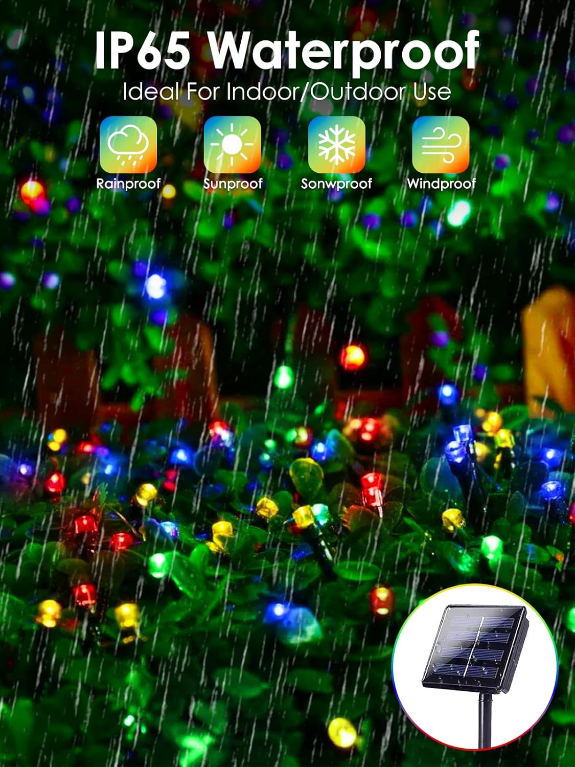 - 8 Modes and Memory Function: Our solar twinkle lights feature an ON/OFF button and a mode button located at the back of the solar panel. You can select 8 different modes to satisfy your diverse needs by pressing the mode button. And the built-in memory chip saves your last modes setting, so there is no need to reset it