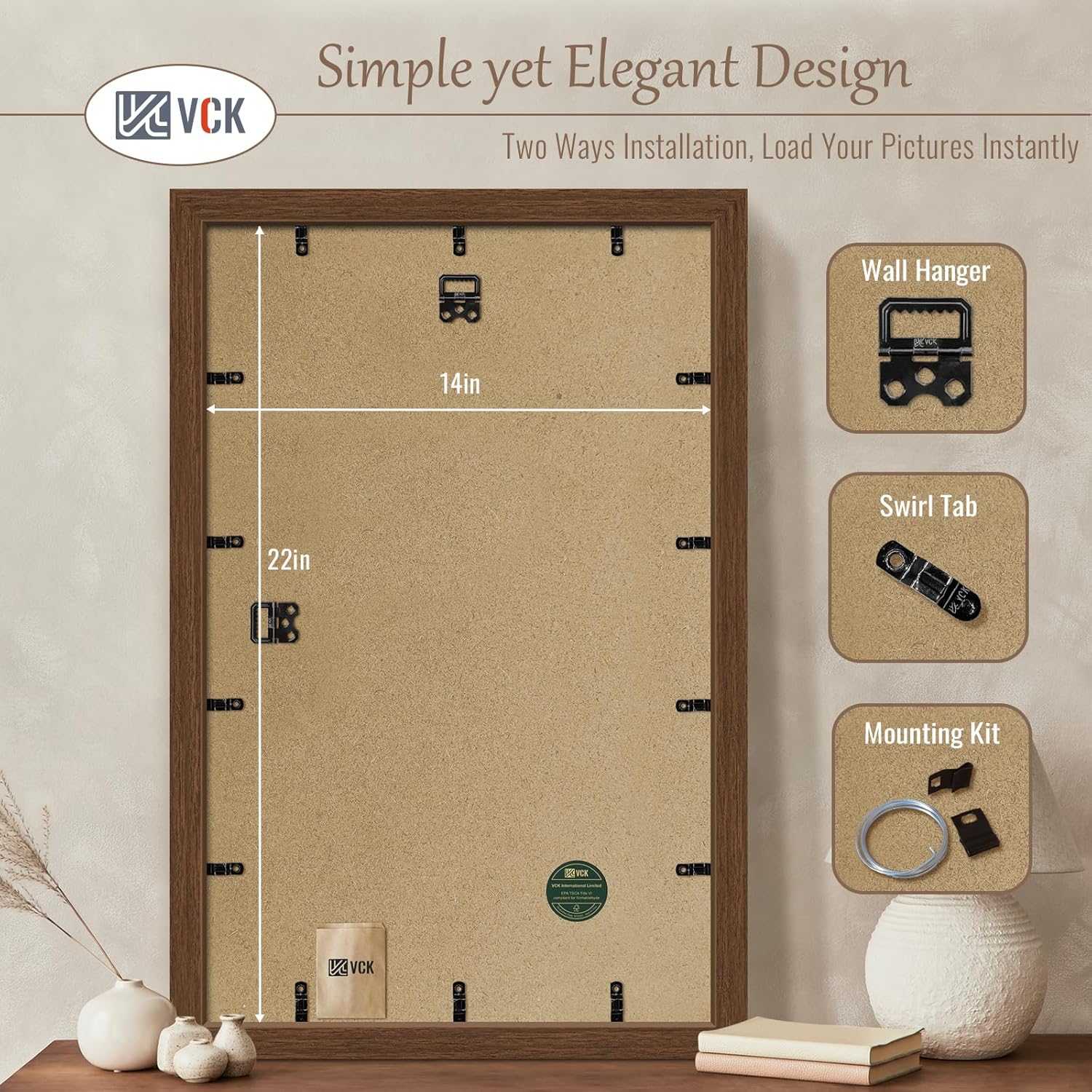 - Effortless Installation: Our poster picture frame comes with hanging hardware for both horizontal and vertical display. The unique spin-lock design allows for effortless loading of 14x22 or 22x14 photos, prints, diplomas, puzzles, or art