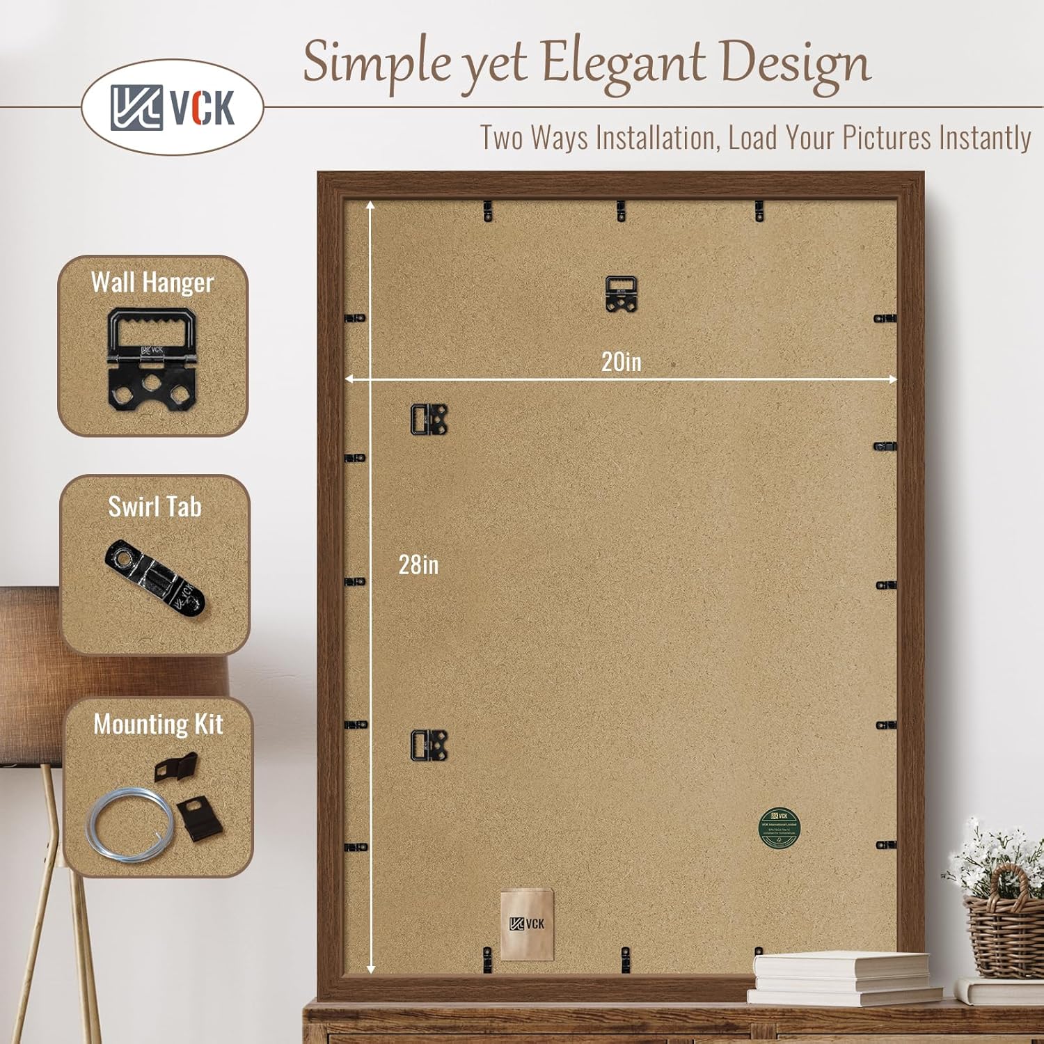 VCK 20x28 Picture Frame 3 Pack, Brown Wood Poster Frame with Exclusive Wood Grain, Wall Mounting Hanging