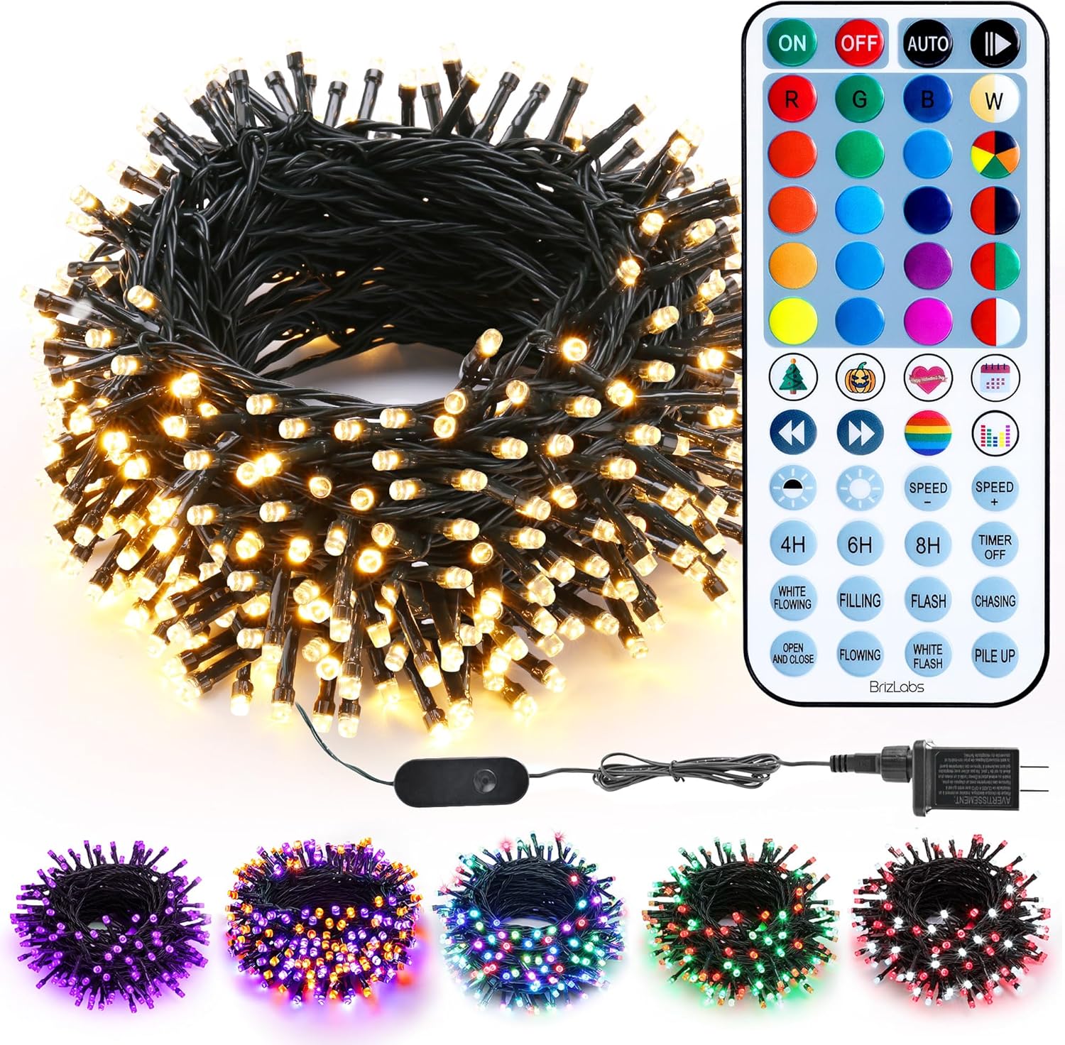 BrizLabs RGBW Christmas Lights, 98.5FT 300 LED Color Changing Halloween String Lights with Remote, Warm White Christmas Light, Twinkle Mini Light String for Indoor Outdoor Xmas Halloween Tree Party