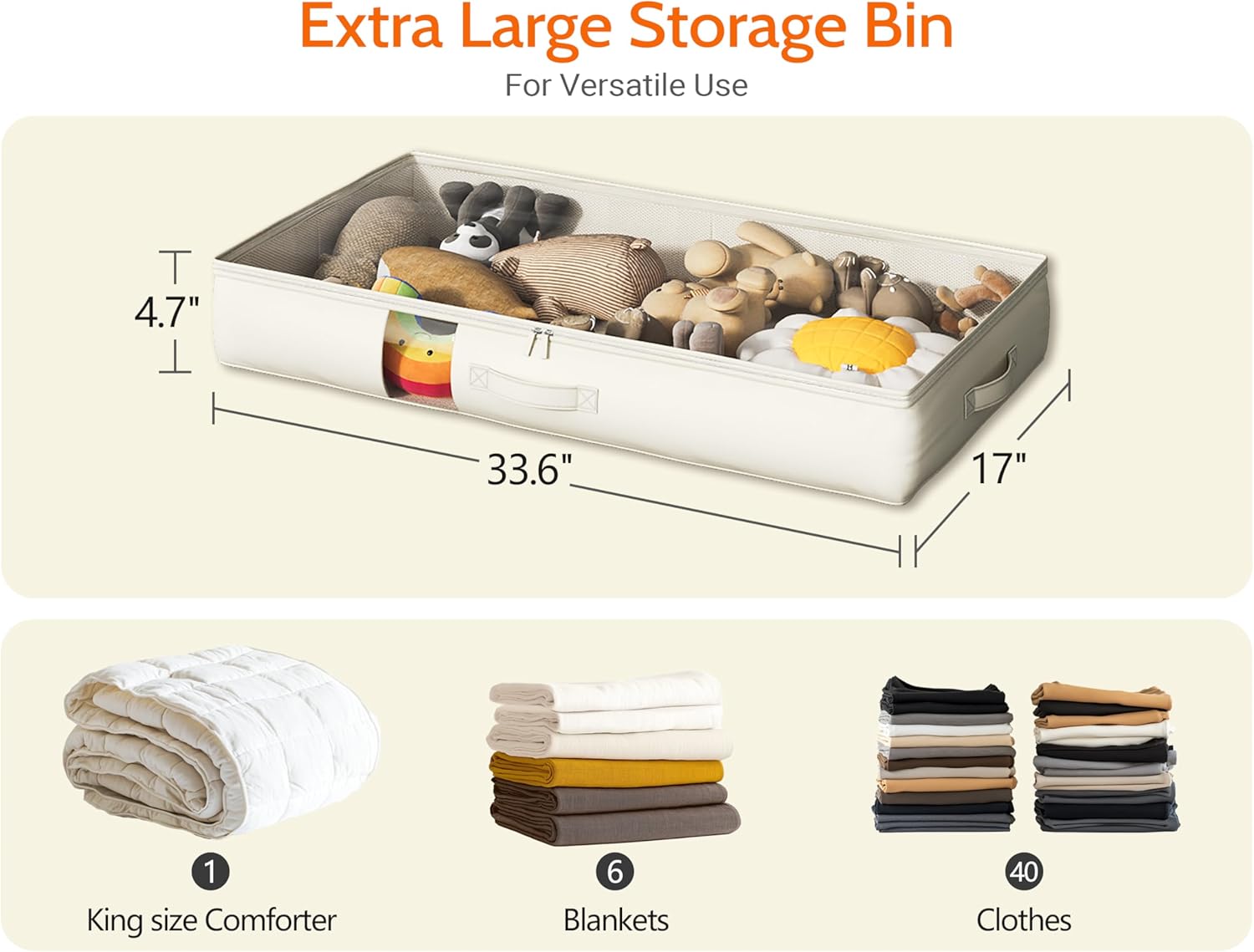 Under Bed Storage Containers with Window, Closet Organizers and Storage Bags, Foldable Underbed Storage Bags for Blankets, Clothing, Comforter, Linen Sheets, Wrapping Paper, 3 Pack, White Ivory