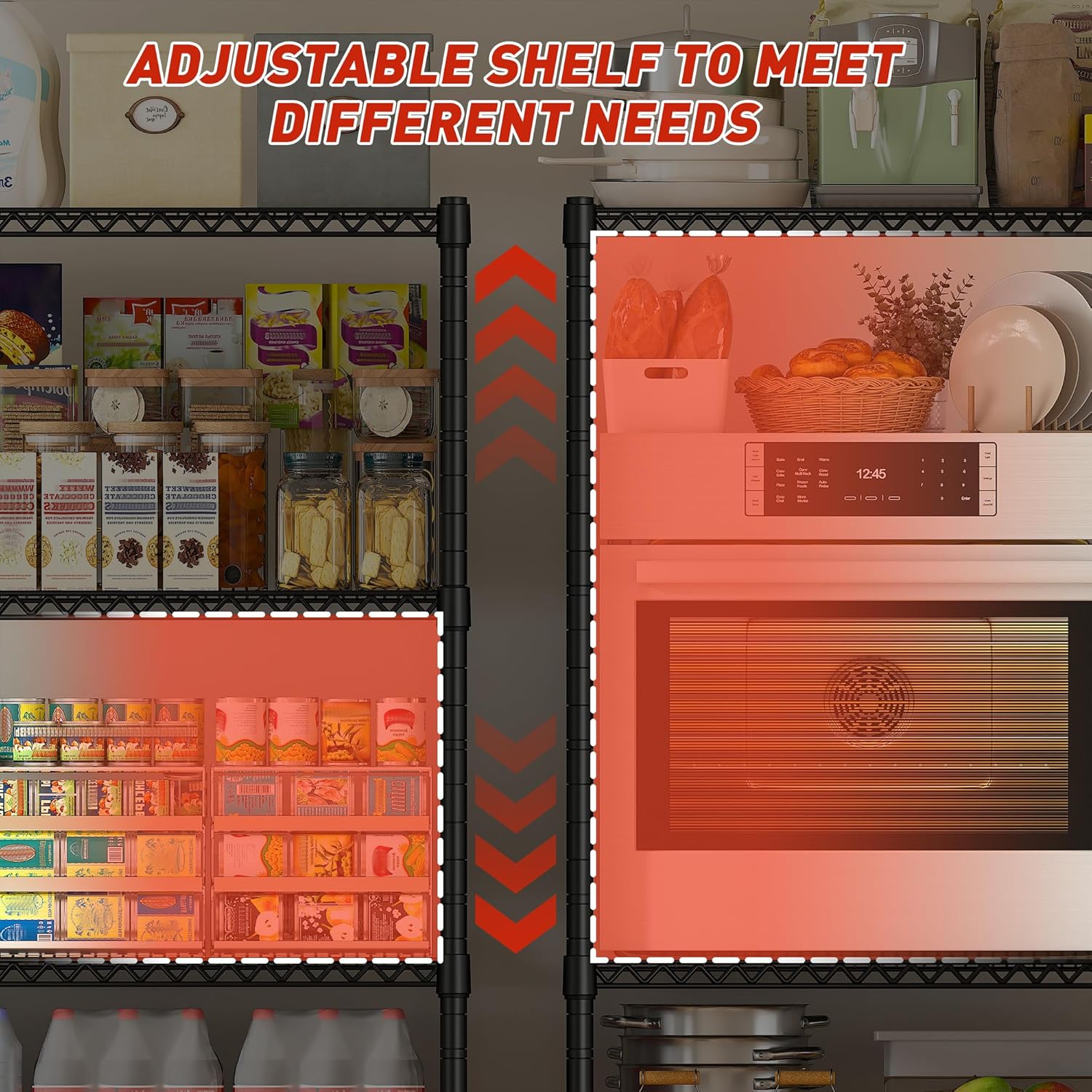 - γ60"W Metal Shelving UnitγThe garage shelving measure 60"W x 18"D x 65.5"H. The capacity of the shelf is twice as much as the pantry shelves, easily meet your storage needs. Also perfect for various spaces such as garage, pantry room, kitchen, living room, office, warehouse, commercial exhibition, hotel, supermarket, etc.