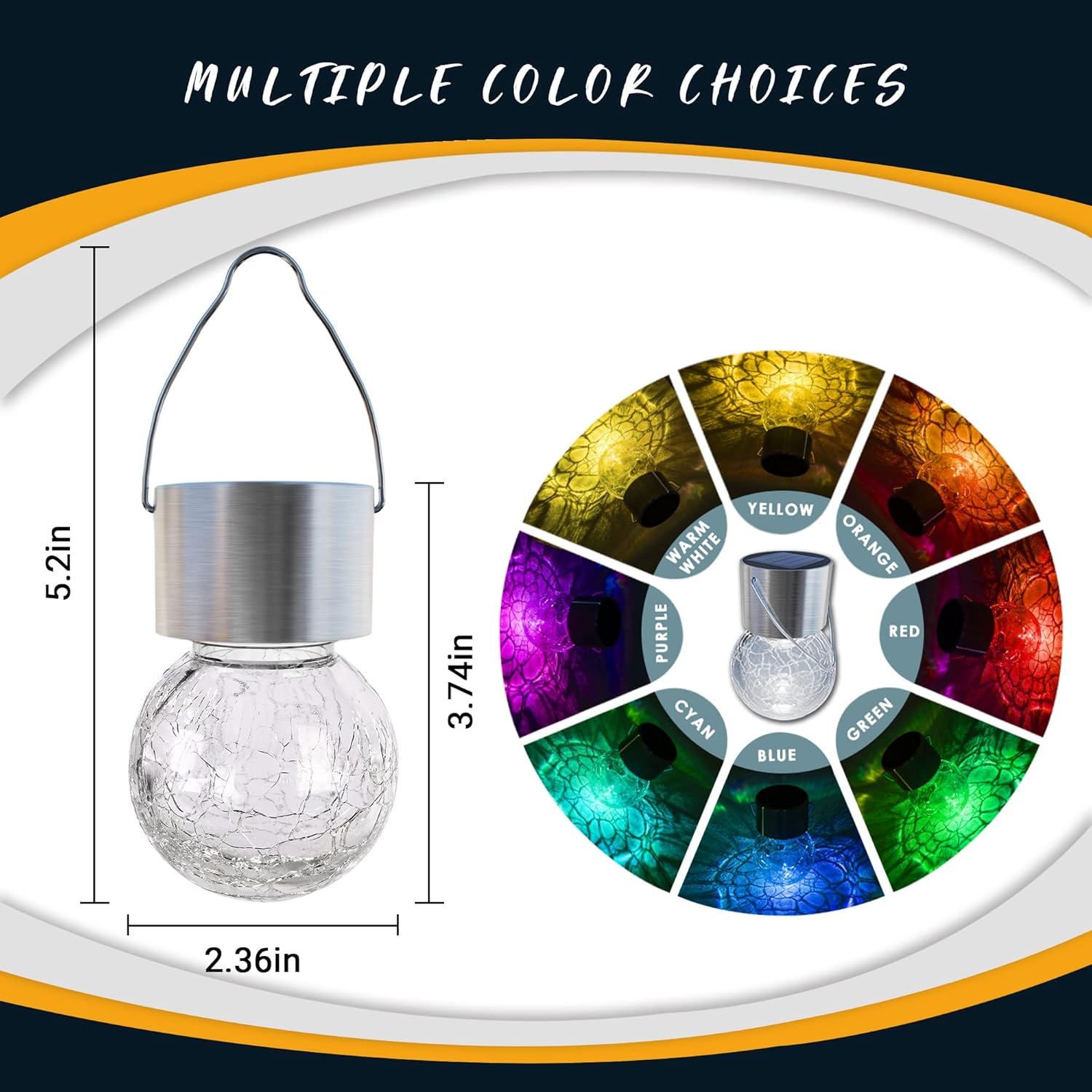 - 【Premium Material】Featuring a shimmering crackle glass globe, a sturdy stainless-steel hook and newest upgrade solar panel, adding a superior light effect to your garden