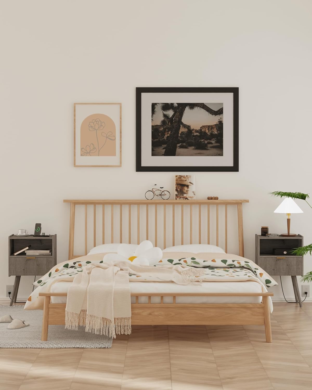- Small Side Table for Small Spaces:This nightstand is small but has a lot of space,with a storage drawers and open wood shelf that provides a perfect storage space for your remote control, glasses, medicines and other essentials close at hand.The wide top is perfect for displaying a lamp, clock, potted plant or photo frame to offer warmth and personalized decoration.