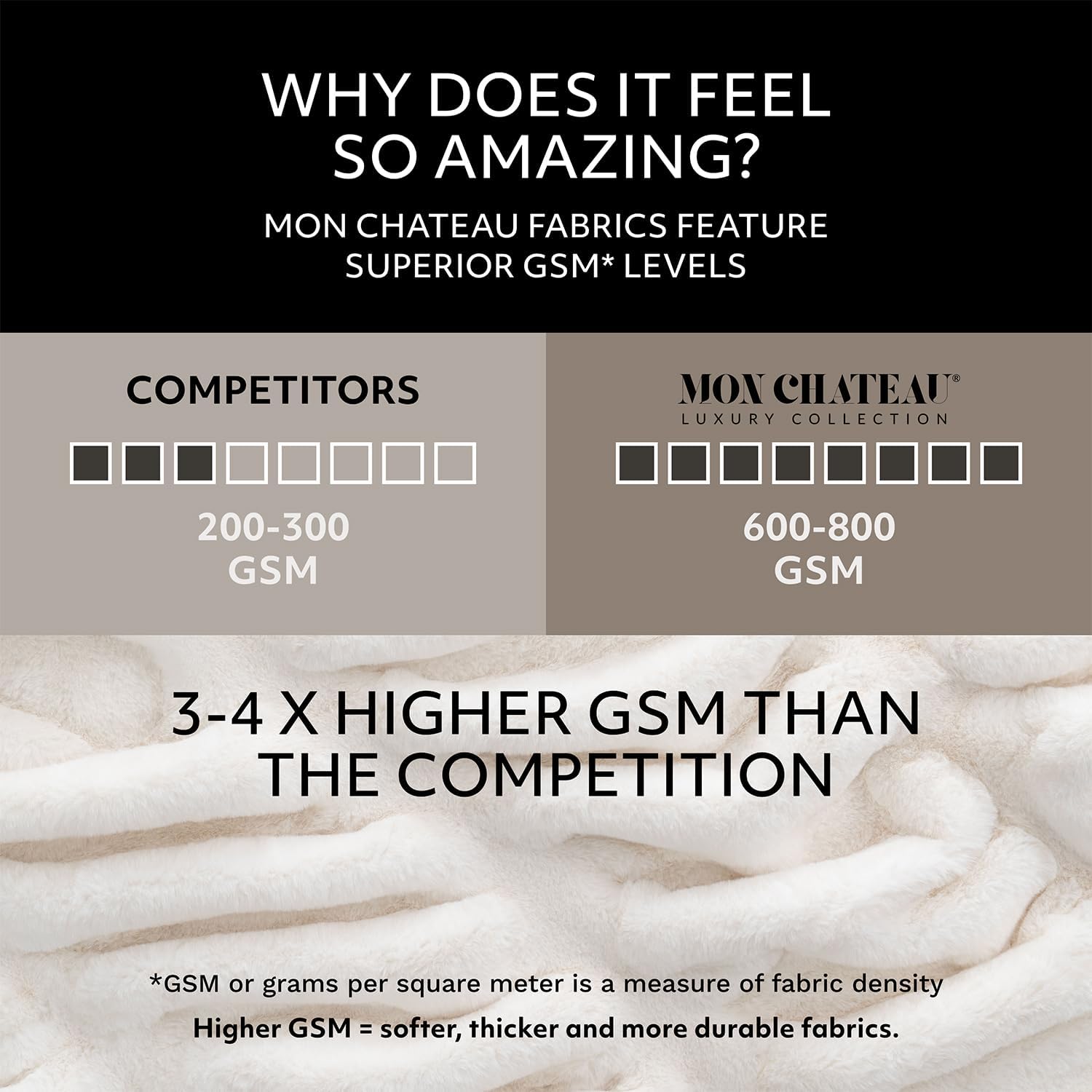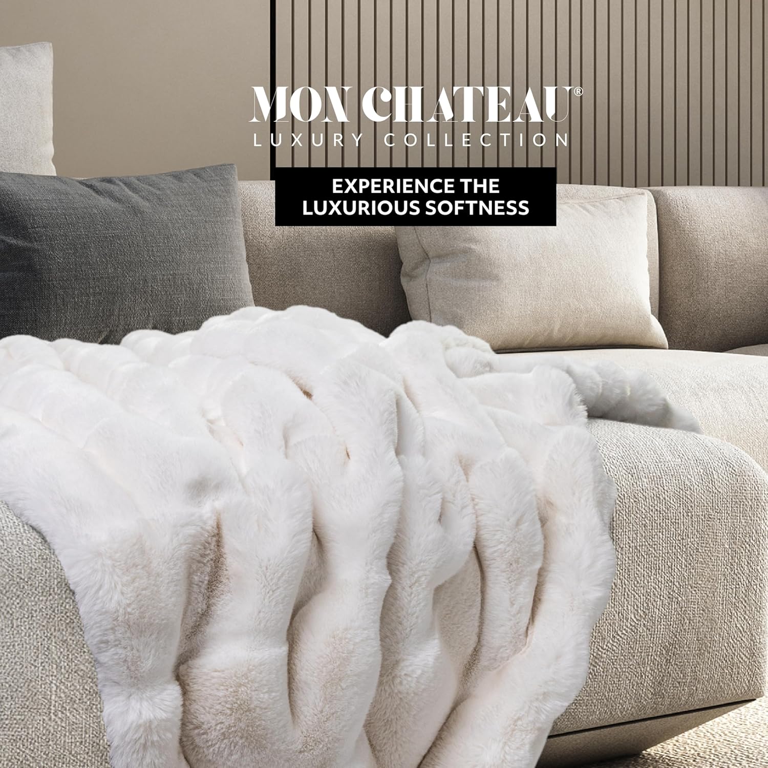 Mon Chateau Premium Reversible Luxury Faux Fur Throw for Couch, Sofa, or Bed - Plush Cozy Soft Blanket for Sleeping or Home Décor, 60" x 70" (Ivory)
