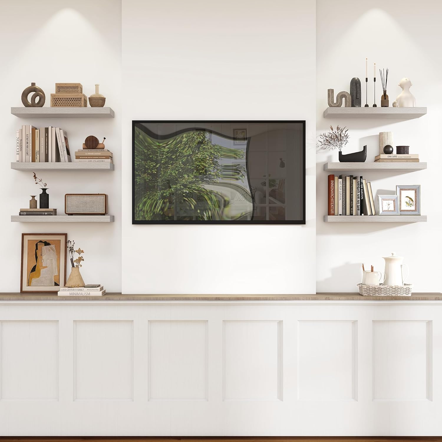 Heimlove 24 inch Floating Shelves for Wall,9.3 inch deep Grey Bathroom Over Toilet Shelf,Wall Mounted Rustic Wood Shelves for Bedroom,Living Room,Kitchen,Office Decor Set of 2-Grey