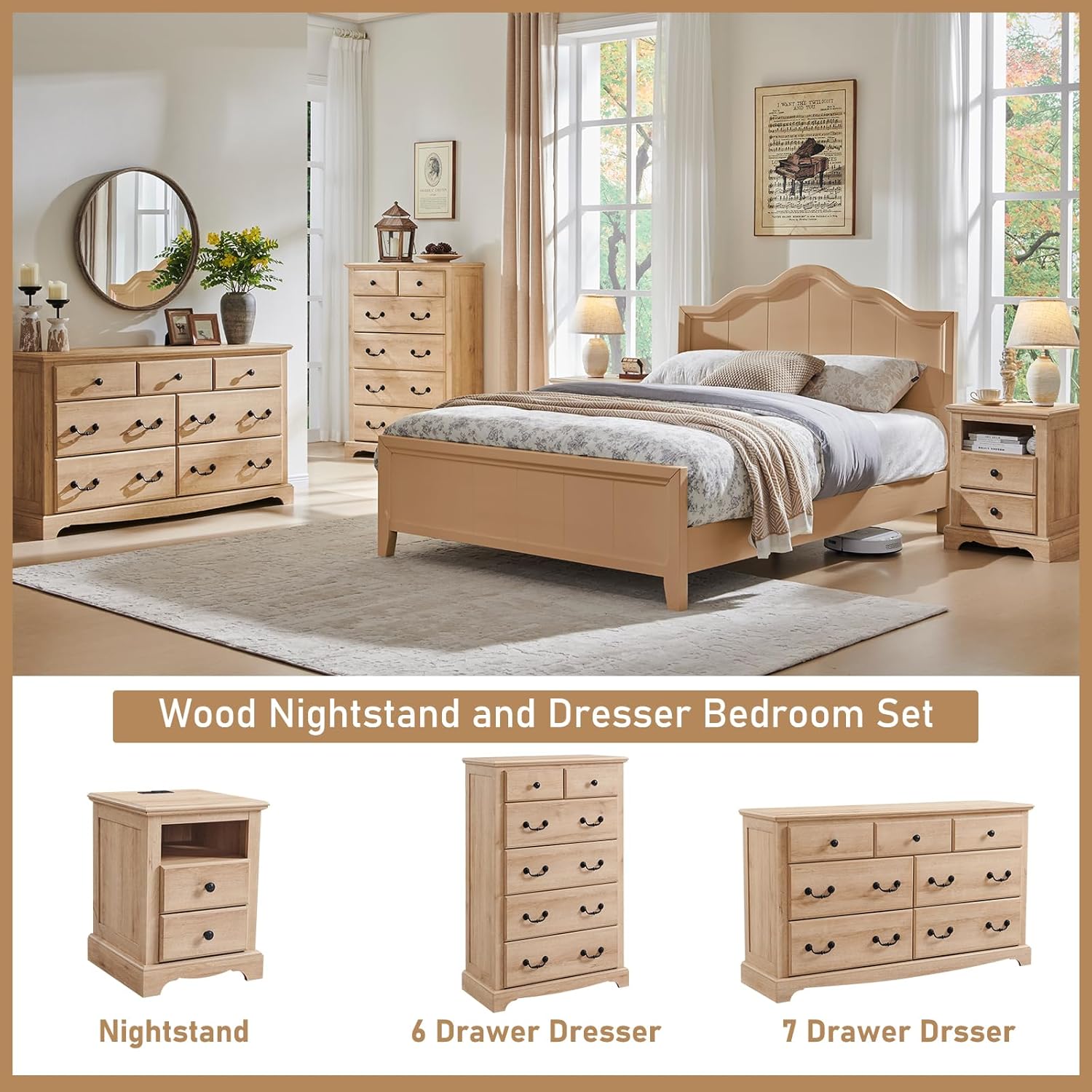 T4TREAM 7 Drawers Dresser Chests for Bedroom, Wood Vintage Chests of Drawers, Rustic Dressers Chset Organizer for Bedroom, Living Room, Hallway, Natural Oak