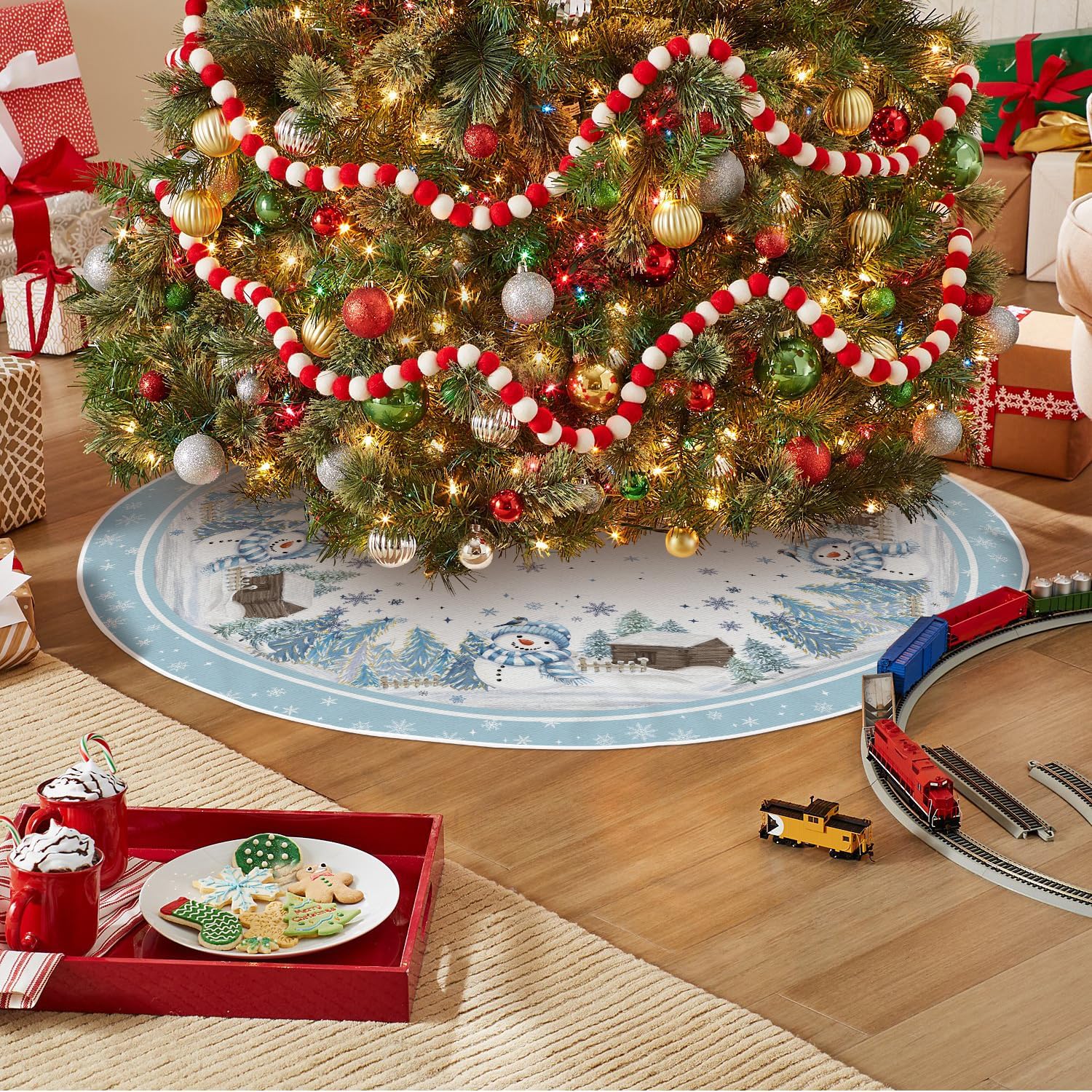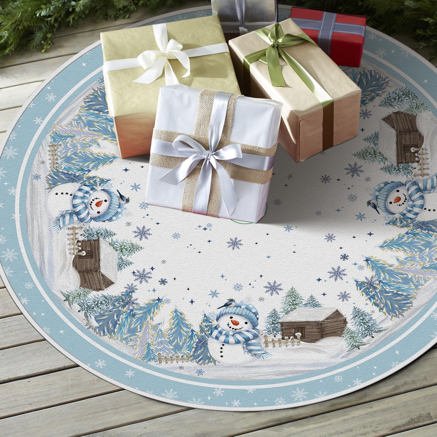 AVOIN colorlife Snowflake Snowman Cardinal Christmas Tree Skirt 36 Inch, Winter Holiday Tree Mat Decoration