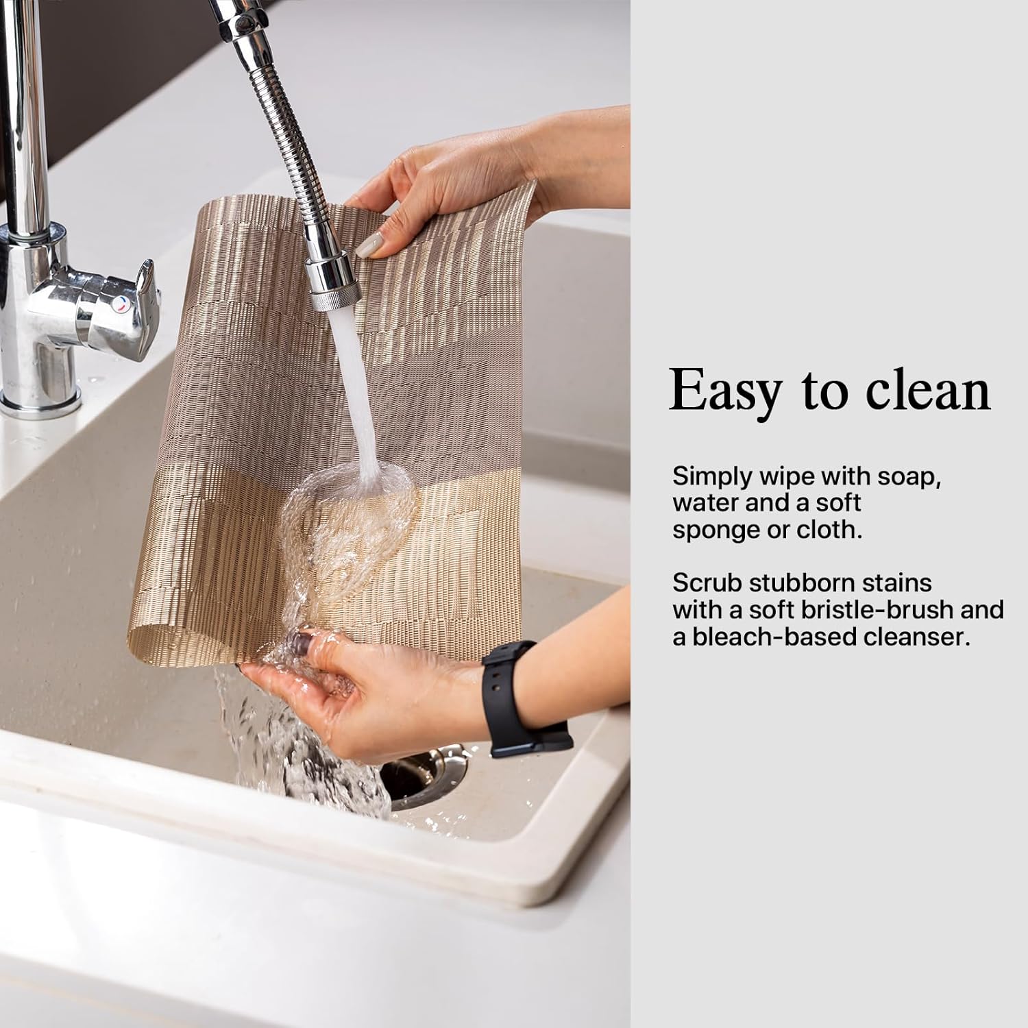 Placemats Set of 12 - Easy Clean Woven Vinyl Placemats for Dining Table, Indoor/Outdoor Place Mats, Washable PVC Table Mats (Gold Dune)