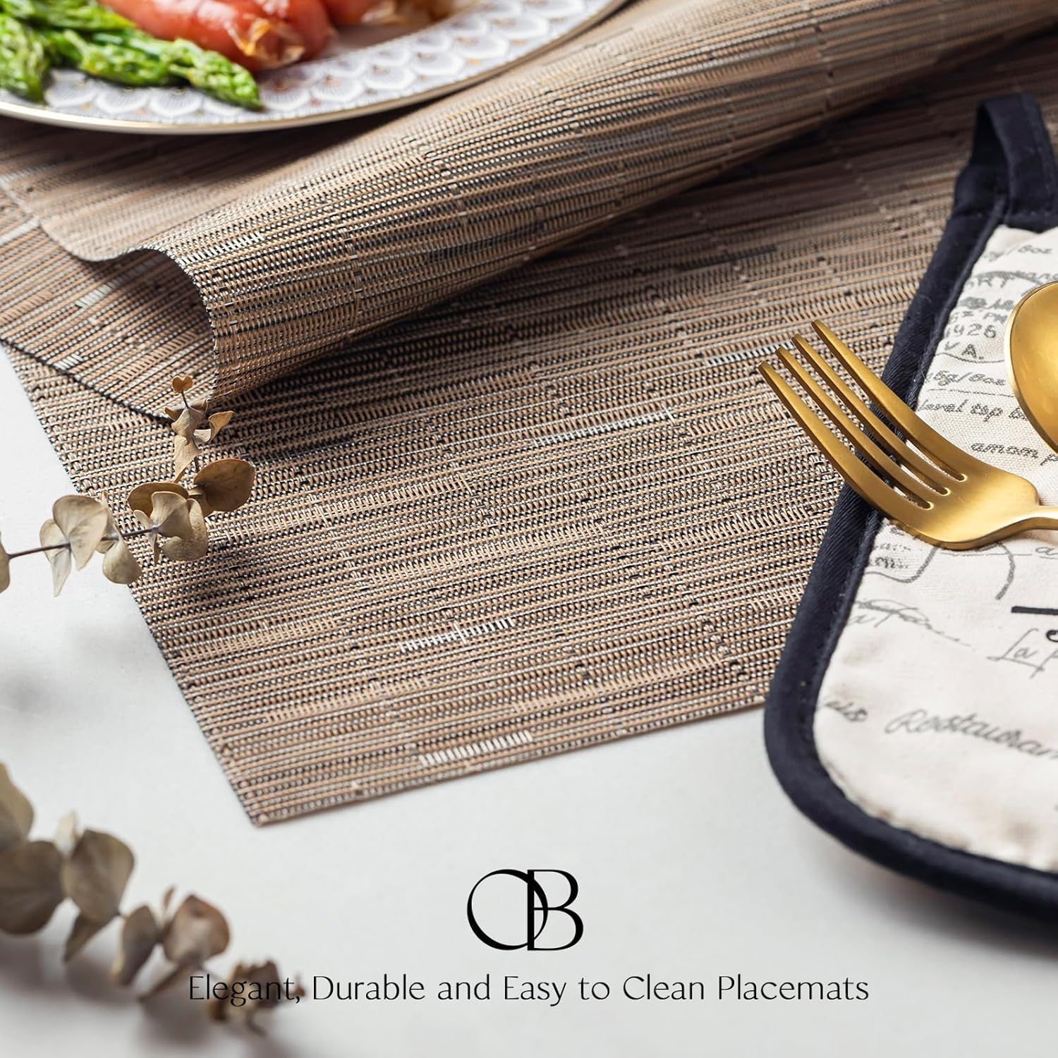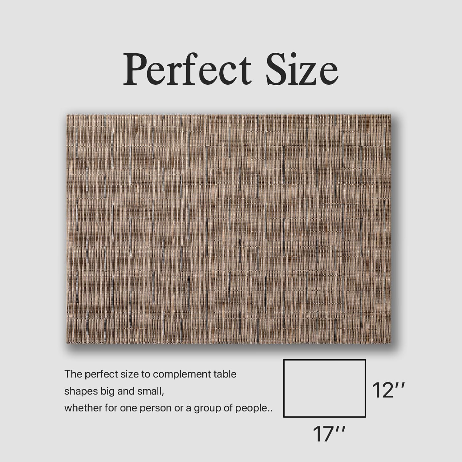 Placemats Set of 6 - Easy Clean Woven Vinyl Placemats for Dining Table, Indoor/Outdoor Place Mats, Washable PVC Table Mats (Light Brown)
