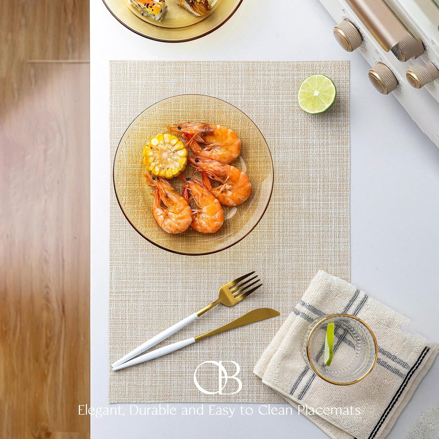 Placemats Set of 6 - Easy Clean Woven Vinyl Placemat for Dining Table, Indoor/Outdoor Place Mats, Washable PVC Table Mats(Beige)