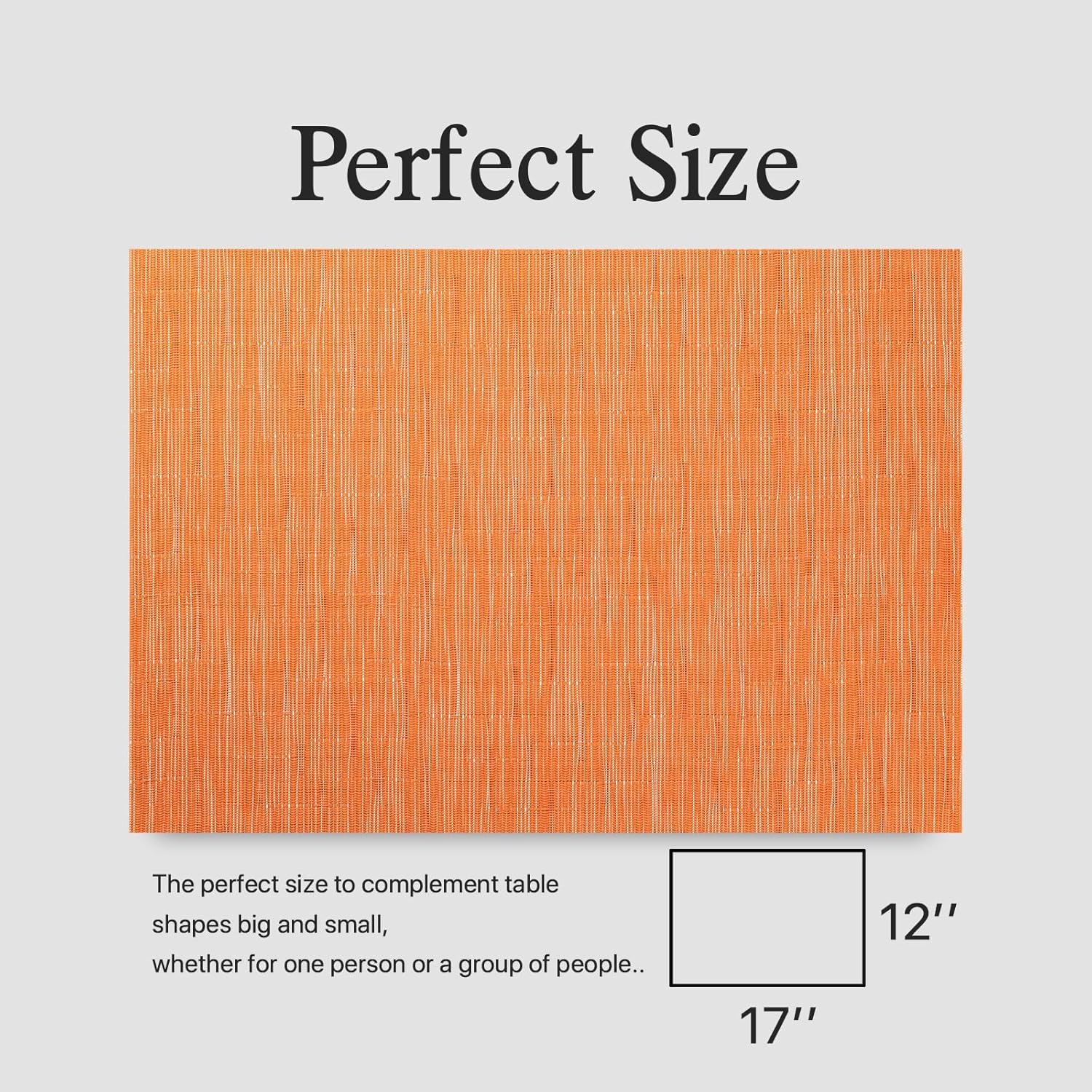 Placemats Set of 8 - Easy Clean Woven Vinyl Placemats for Dining Table, Indoor/Outdoor Place Mats, Washable PVC Table Mats (Orange)