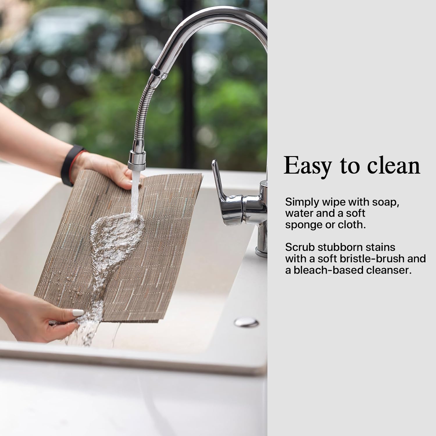 - Premium Quality and Durability: Onebento placemats are made from a high-quality blend of 70% PVC and 30% polyester, offering exceptional durability and aesthetic. This combination ensures long-lasting use and superior protection for your dining table, making it a perfect choice for quality-required consumers.