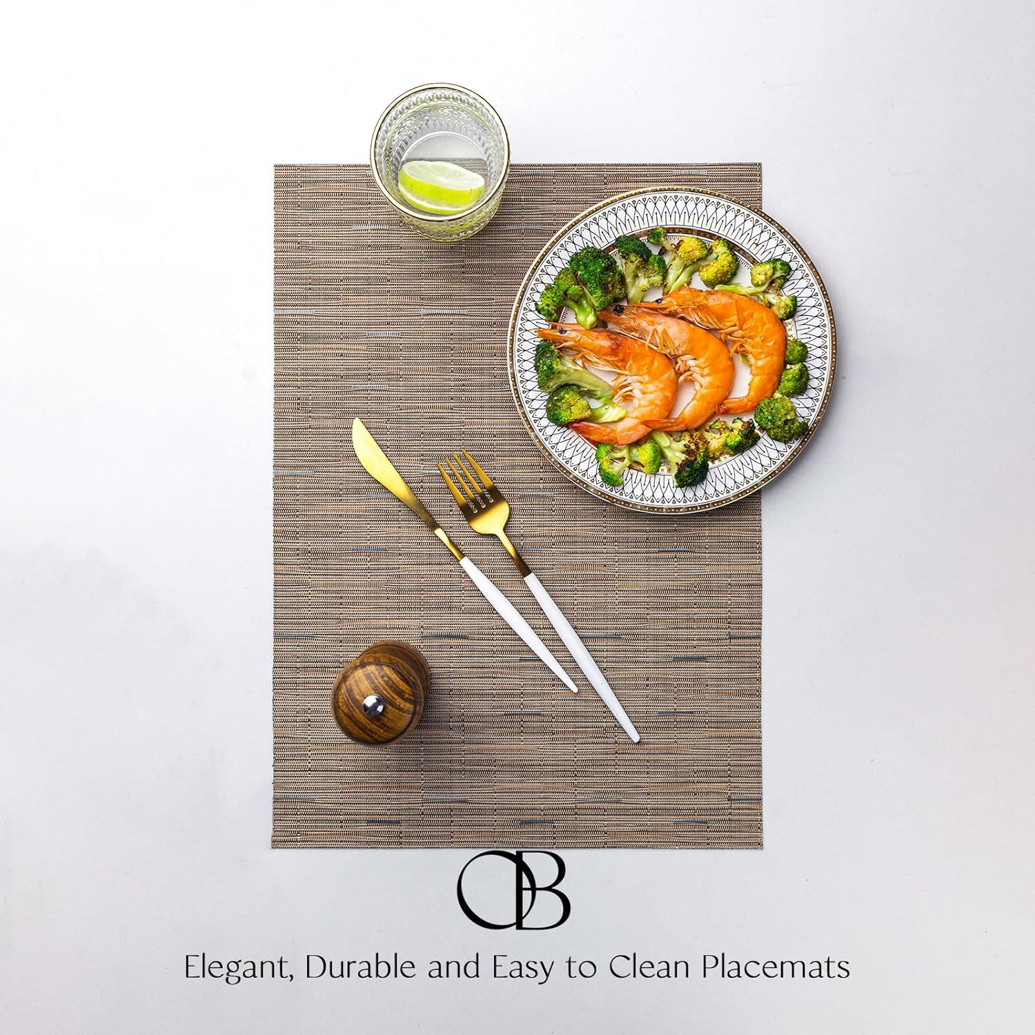 Placemats Set of 12 - Easy Clean Woven Vinyl Placemats for Dining Table, Indoor/Outdoor Place Mats, Washable PVC Table Mats (Light Brown)