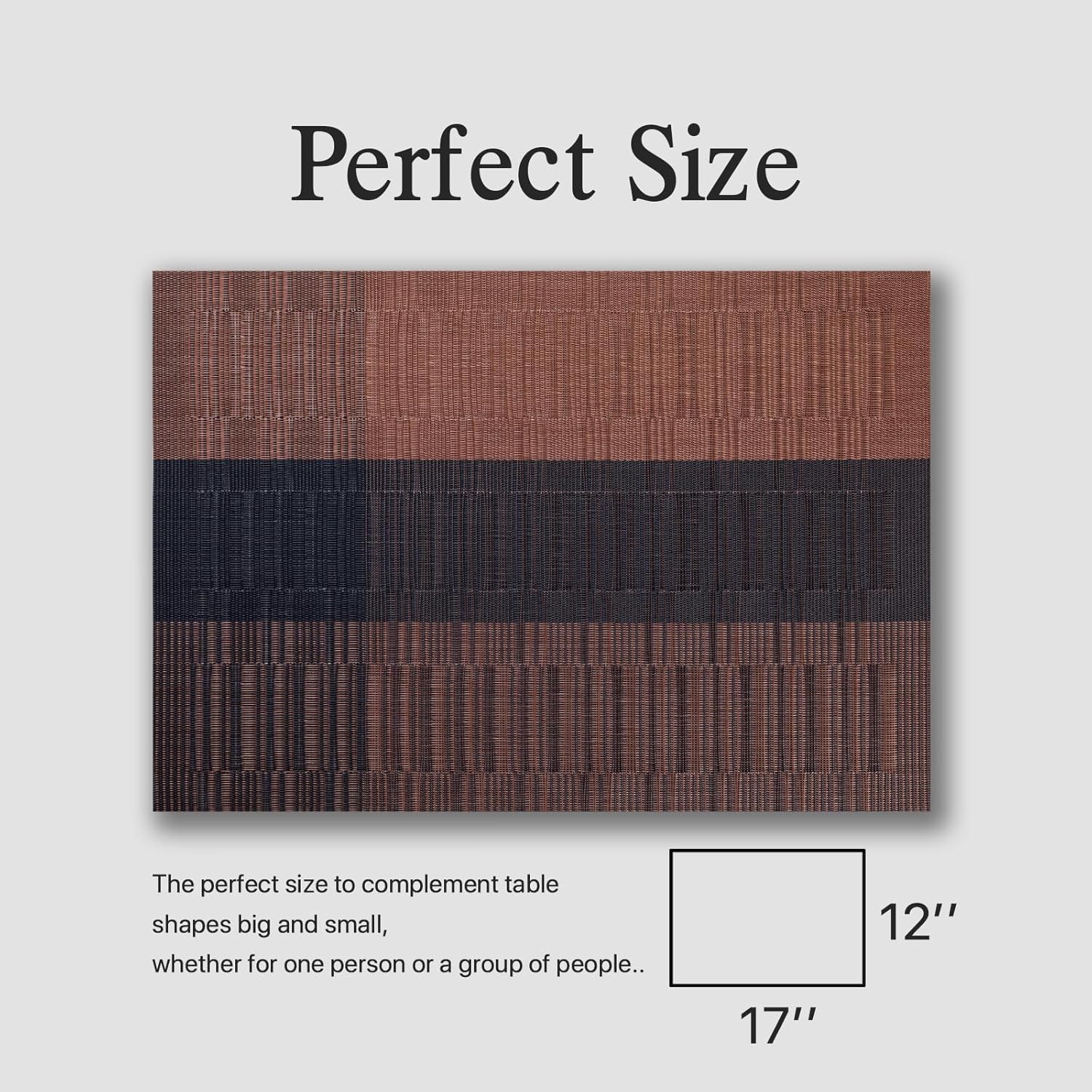 Placemats Set of 8 - Easy Clean Woven Vinyl Placemats for Dining Table, Indoor/Outdoor Place Mats, Washable PVC Table Mats (Ombre Brown Black)