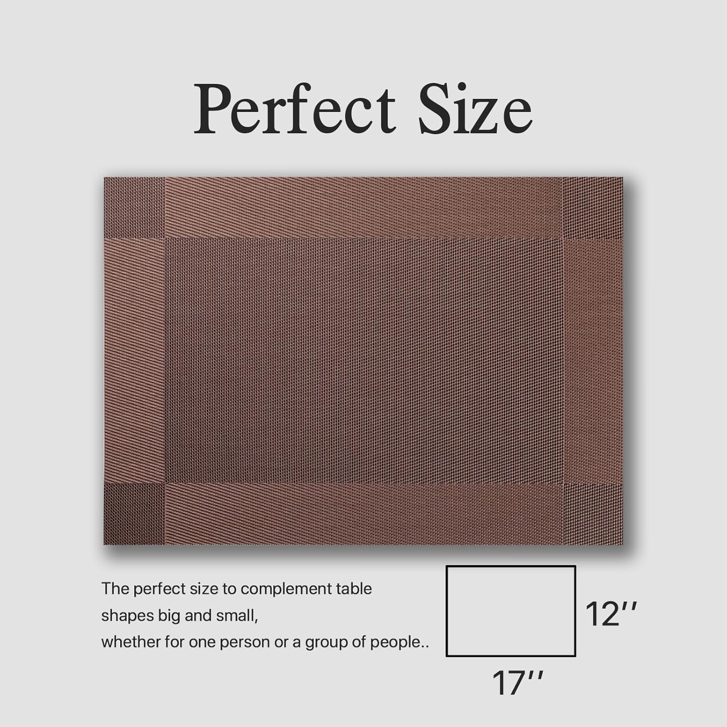 Placemats Set of 6 - Easy Clean Woven Vinyl Placemats for Dining Table, Indoor/Outdoor Place Mats, Washable PVC Table Mats(Brown Cube)