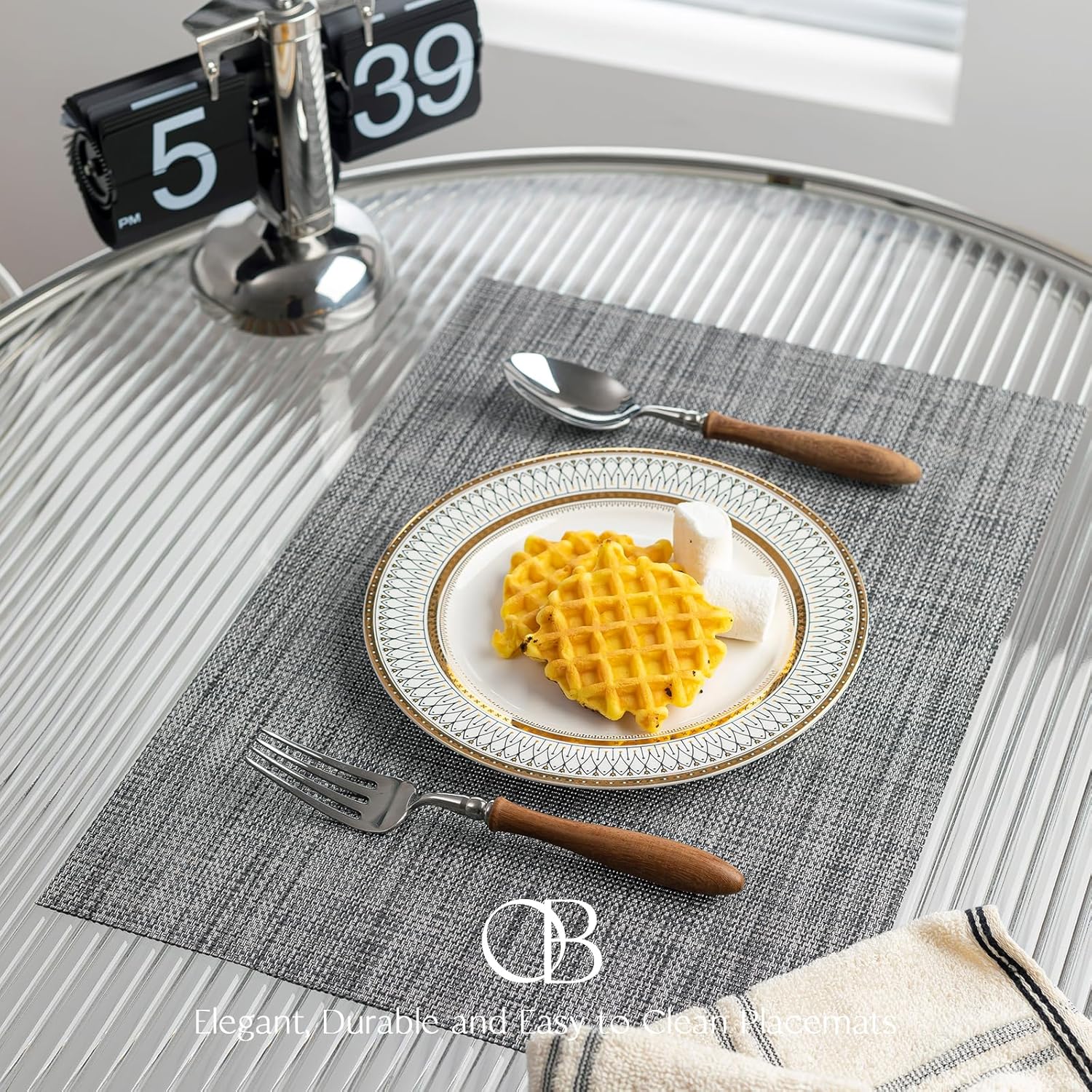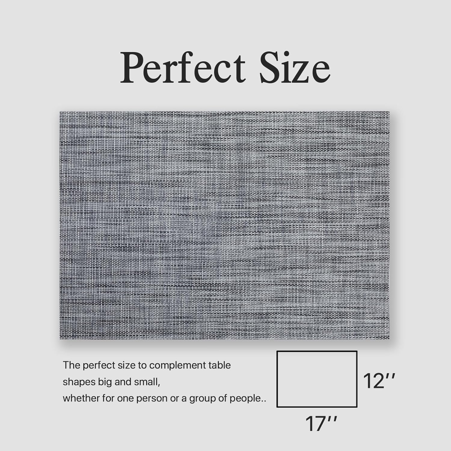 Placemats Set of 8 - Easy Clean Woven Vinyl Placemats for Dining Table, Indoor/Outdoor Place Mats, Washable PVC Table Mats(Dark Gray)