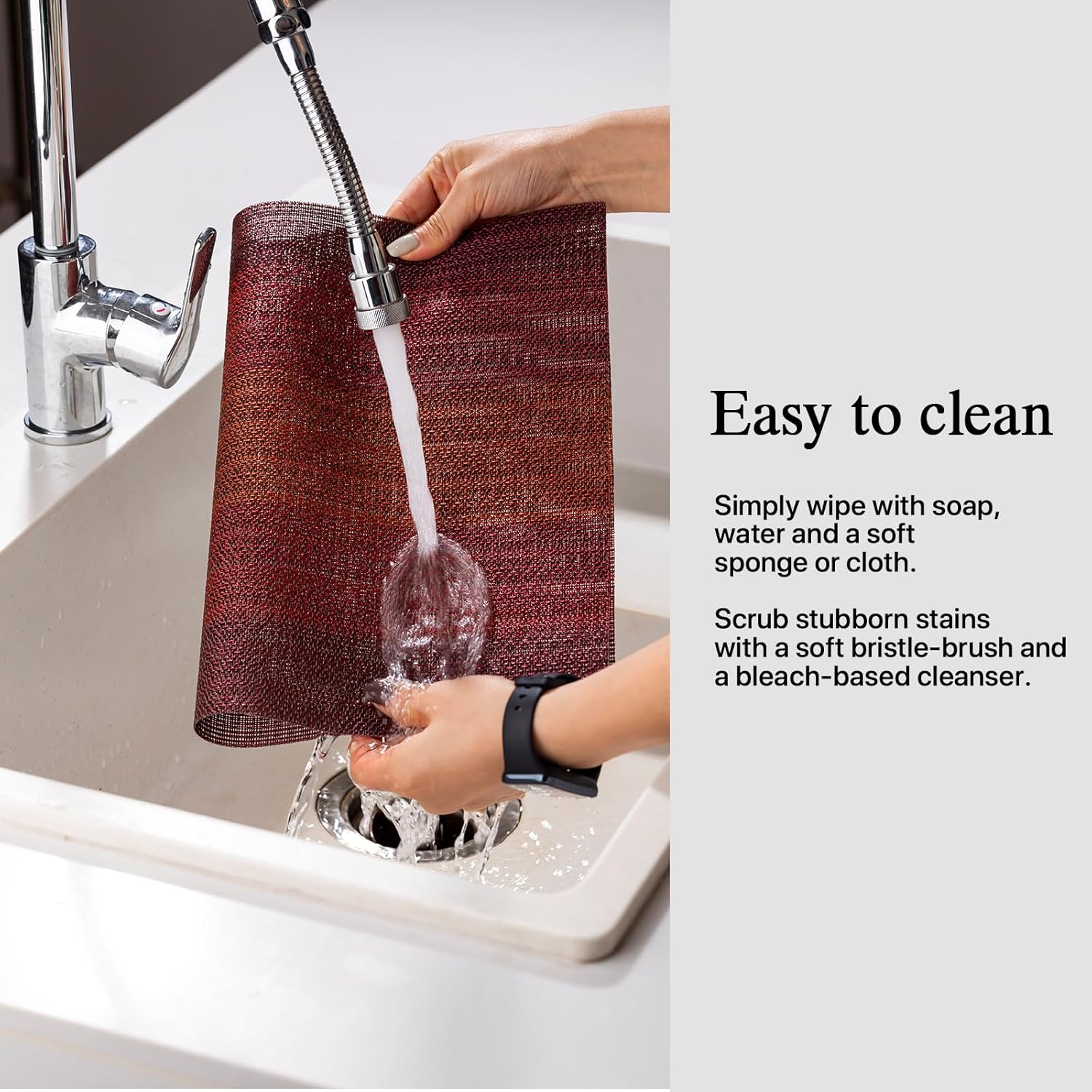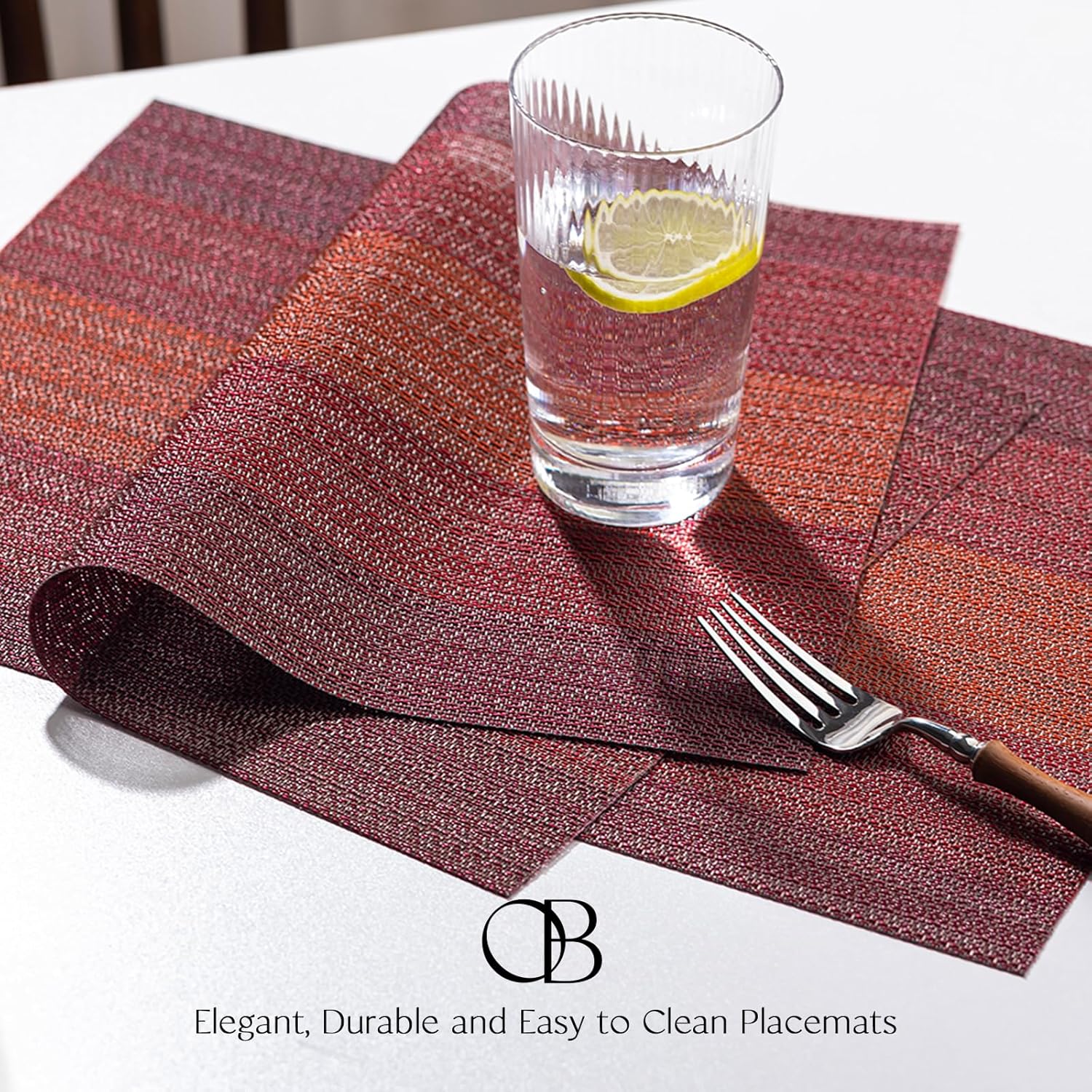 Placemats Set of 4 - Easy Clean Woven Vinyl Placemats for Dining Table, Indoor/Outdoor Place Mats, Washable PVC Table Mats(Pomegranate Parade)