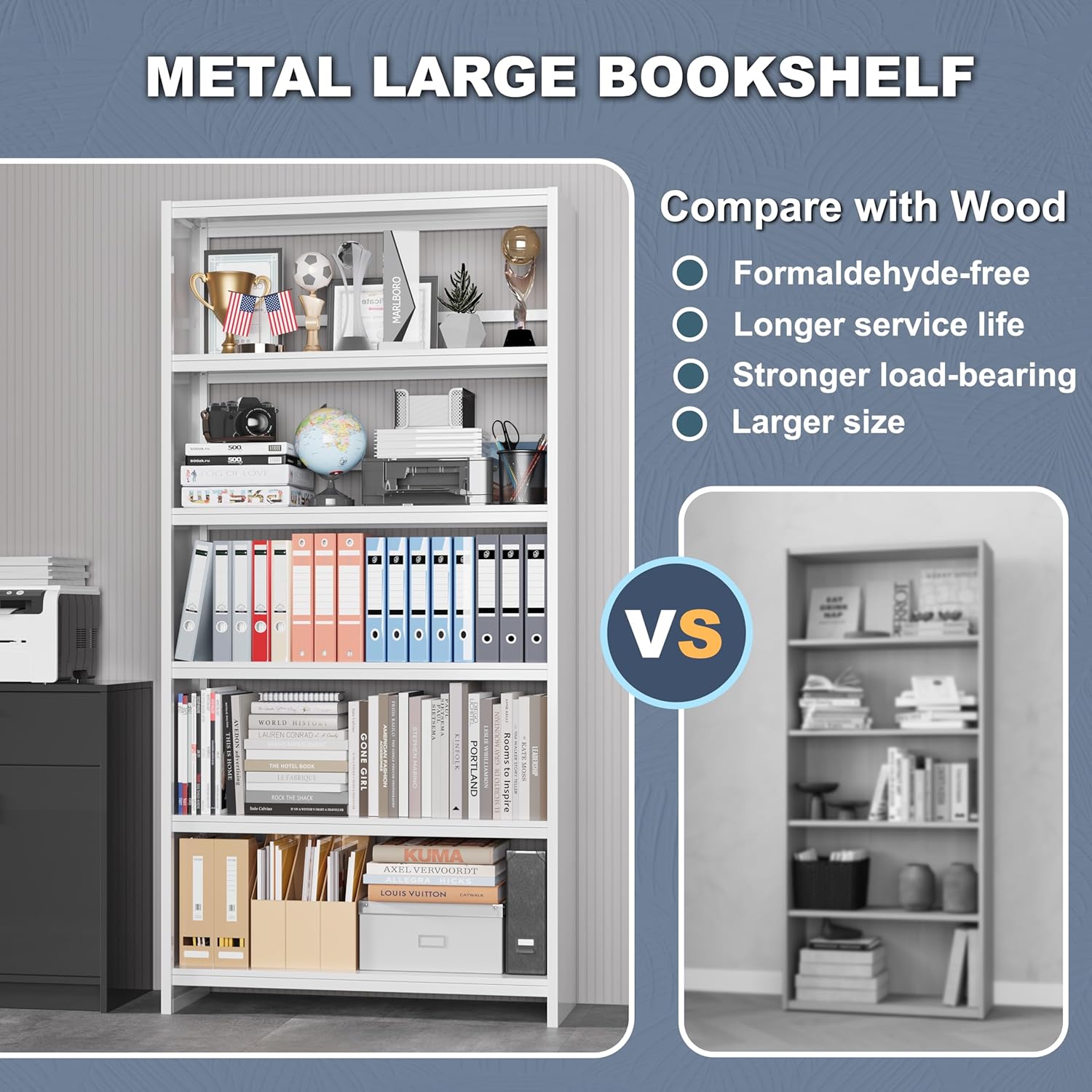 - 【Perfect for Any Space 】The modern style big metal bookshelf is suitable for both home and public places. The sturdy and stable bookshelf surface is scratch resistant and rust resistant. The beautiful and easy to clean bookshelf is suitable for offices, living rooms, and libraries.