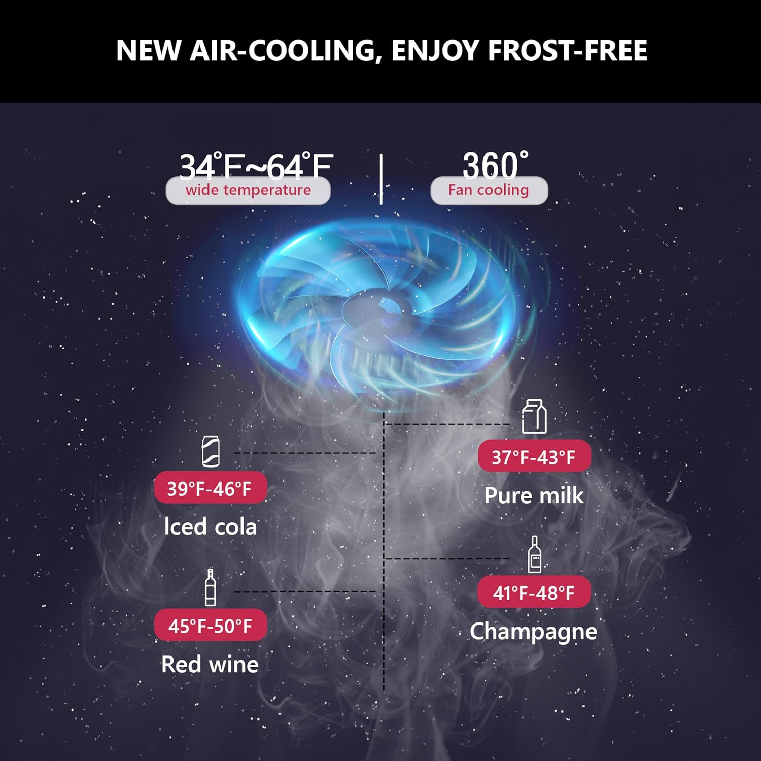 - 【High-Performance Cooling System】With 360° air-cooling mechanism, the beverage cooler features a tempered glass door with low-E film and high-seal gasket. The beverage fridge has powerful compressor but a quiet operation, ensuring uniform cooling environment
