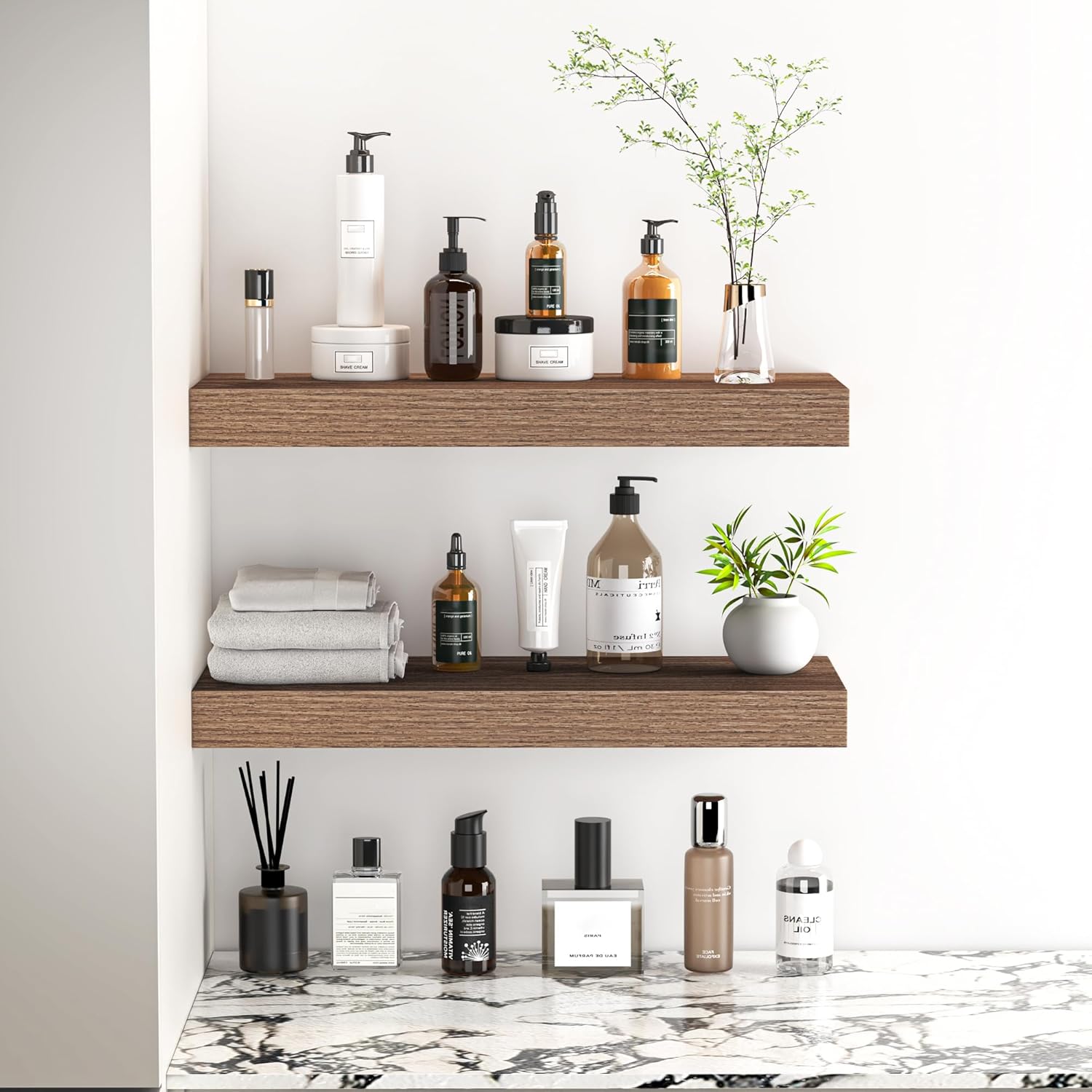 - Rustic & Modern Wooden Floating Shelves - Our shelf is made of durable engineered wood with a natural wood grain finish for a rustic feel. Matte surface makes it modern and minimalist look. It can be mounted and decorated on every wall of your home, perfect for various scenes, whether display your collection or storage.