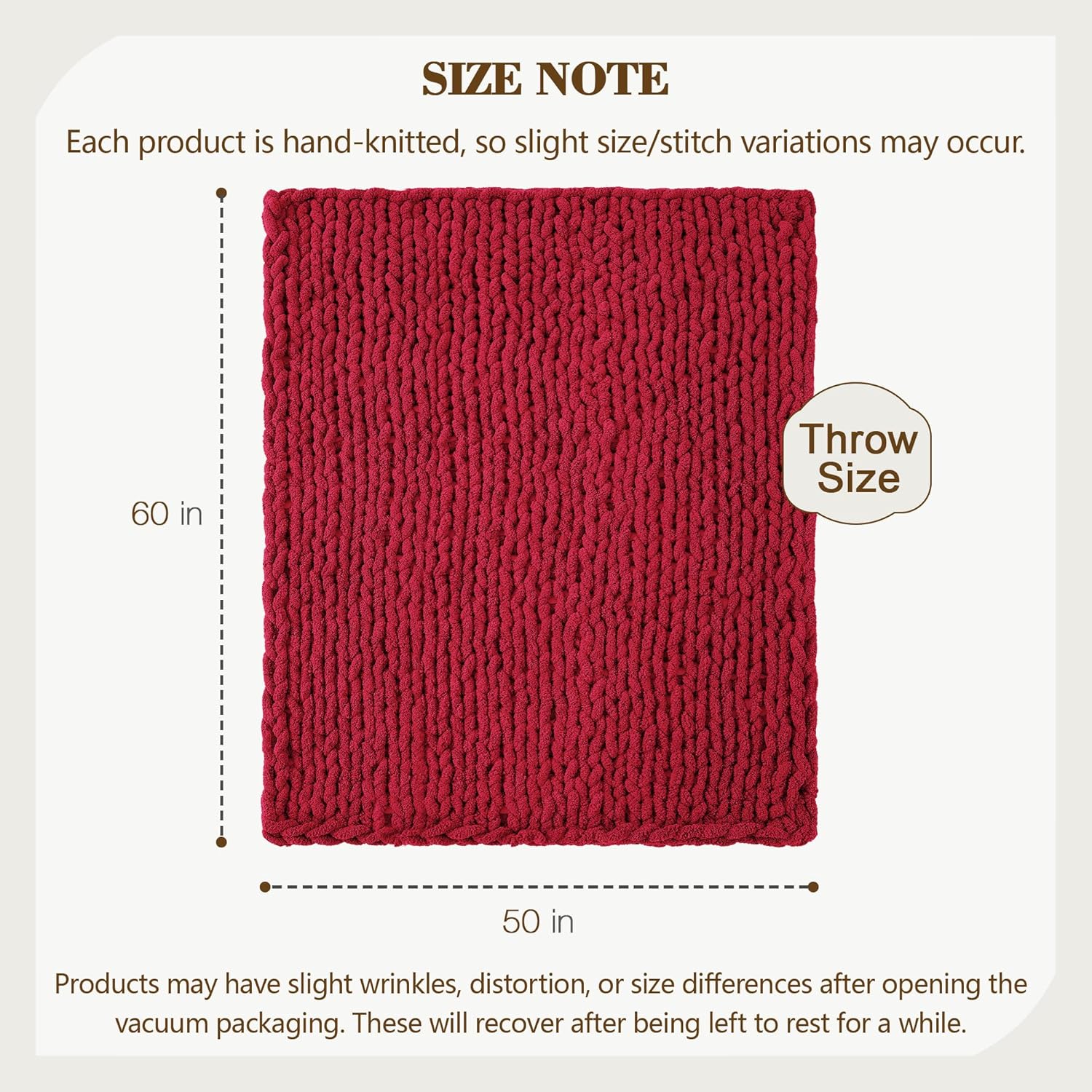 Carriediosa Chunky Knit Throw Blanket 50" X 60", 100% Hand Made Large Chenille Loop Yarn Soft Fluffy Throws for Couch Sofa Bed, Big Crochet Cozy Heavy Thick Cable Woven Blankets, Red