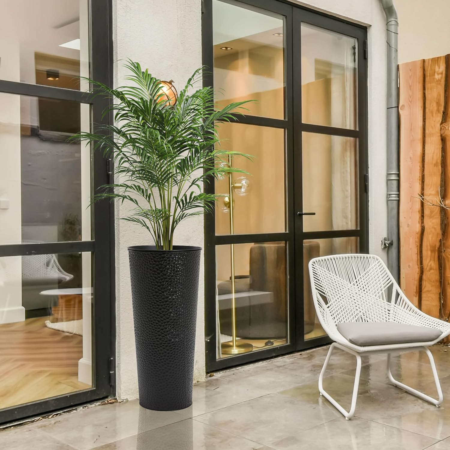 Worth Garden 2-Pack 25" H. Metal Planter with 2X Inside Pots - Hand-Hammered Texture Tall Tapered Plant Pots - Large Handcrafted Flower Pot for Indoor Outdoor, Deck, Patio, Front Porch (Black)