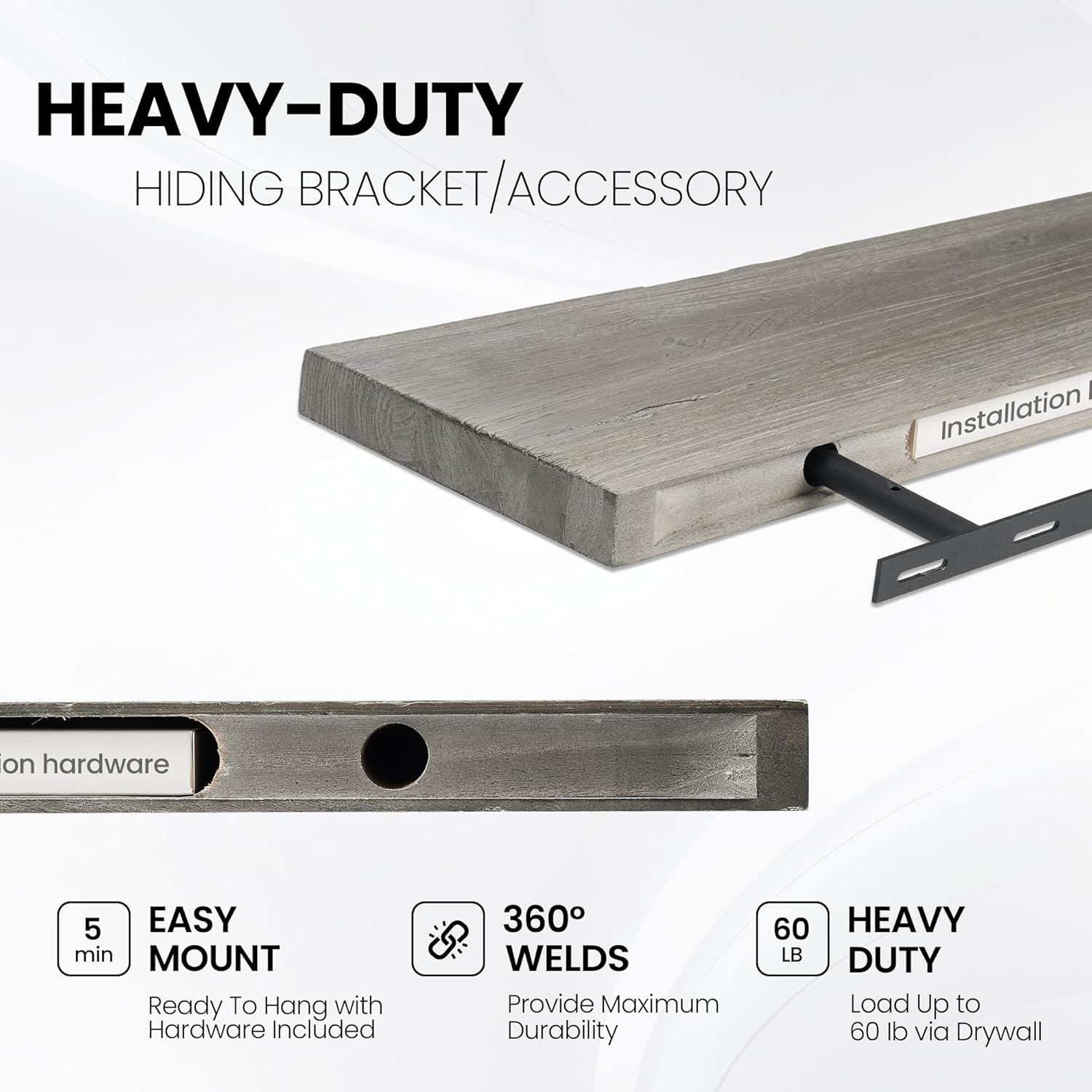 - EASY INSTALLATION: Our floating shelf bracket aligns with standard 16" wall studs and sits flush for a clean finish. Each shelf comes with detailed instructions, a magnetic level, self-tapping drywall anchors, and screws. Whether you're new to this or experienced, you can securely mount these rustic shelves in minutes