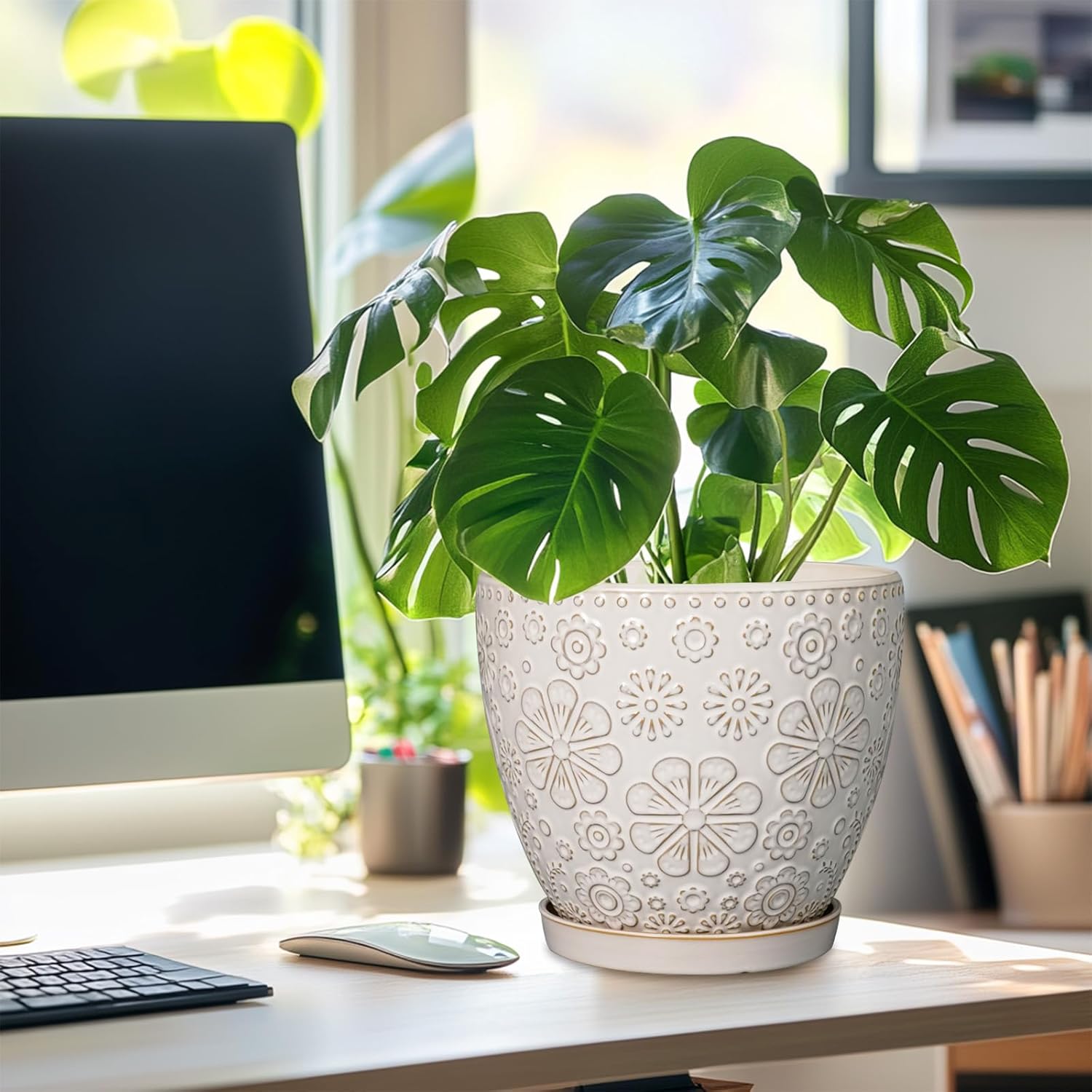 - Stylish Appearance: Our ceramic plant pot has a white main colour and a beautiful embossed petal pattern on the surface, elegant appearance making it ideal for home decor, garden decor and office decor