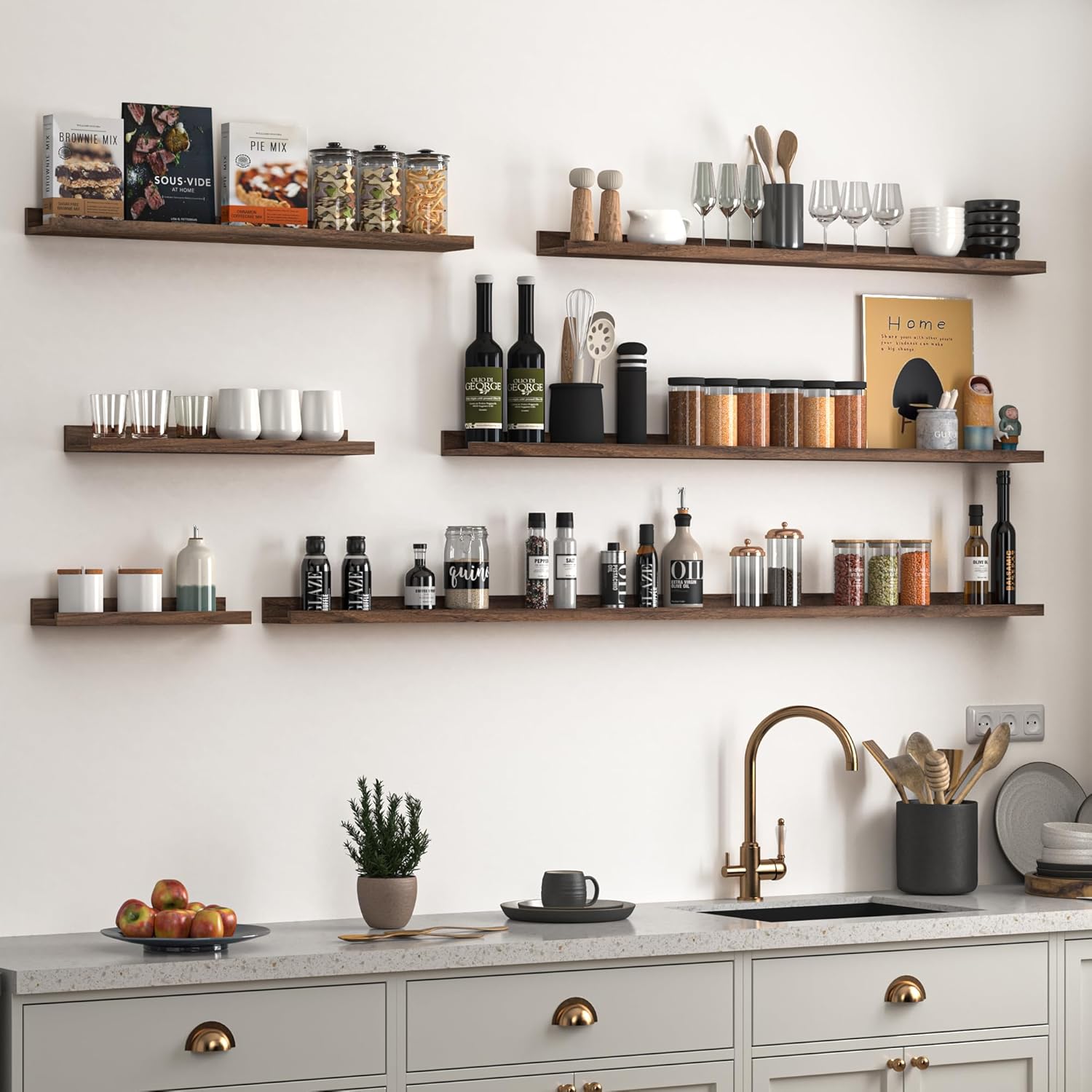 - Picture ledge Shelf for Walls: If you have dozens of pictures but don't know how to display them, Heimlove picture ledge shelves(especially large size) for walls are perfect! With our hanging shelves, store and display different types and sizes of photo frames in one place. The ledge in front of the wall shelves could prevent your precious items from falling off.