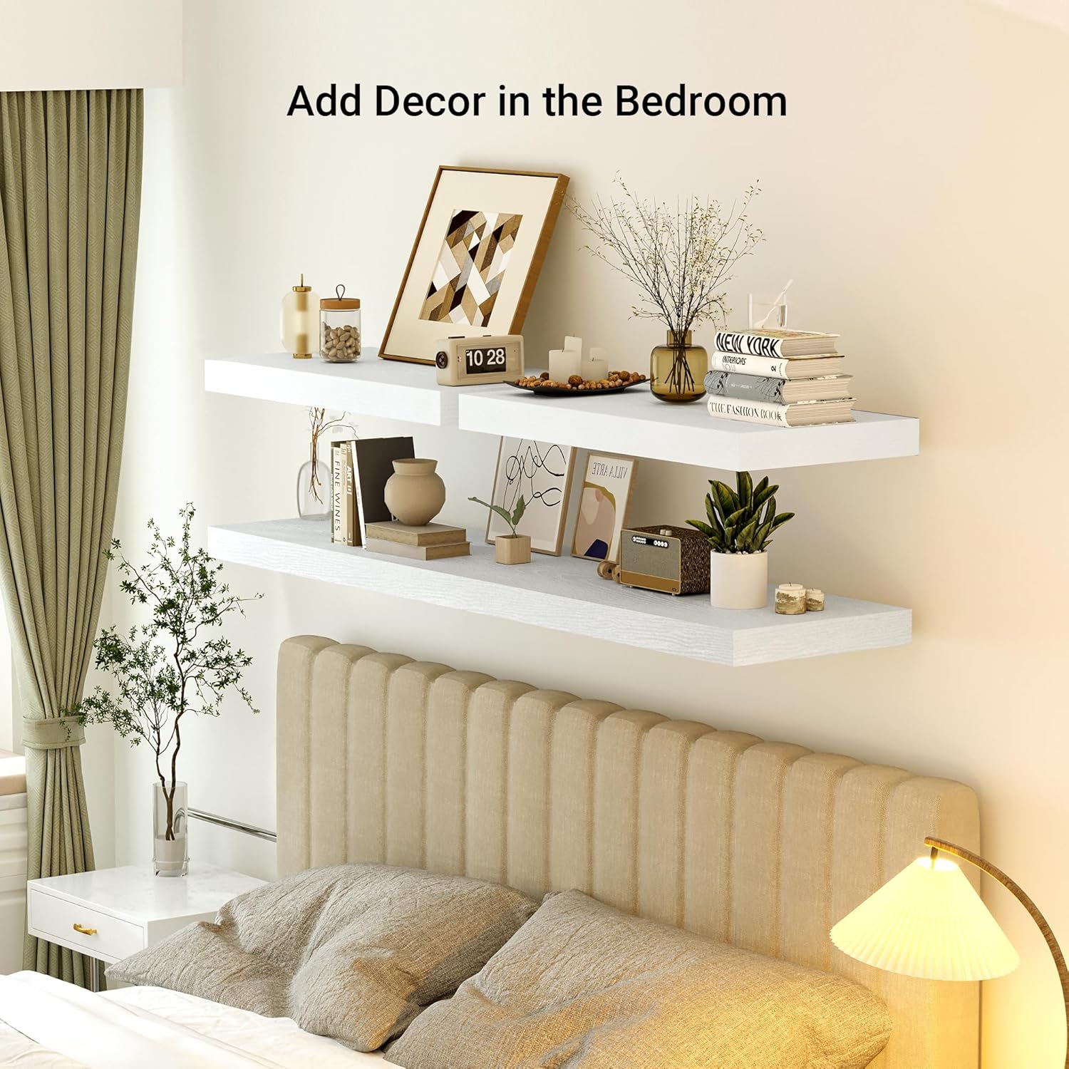 Heimlove 12" Deep Floating Shelves, 36 x 12 Inch Wall Mounted Long Floating Shelf with Invisible Brackets, for Home Decor, Bedroom, Kitchen, Living Room, Bathroom - 1 Pack, White