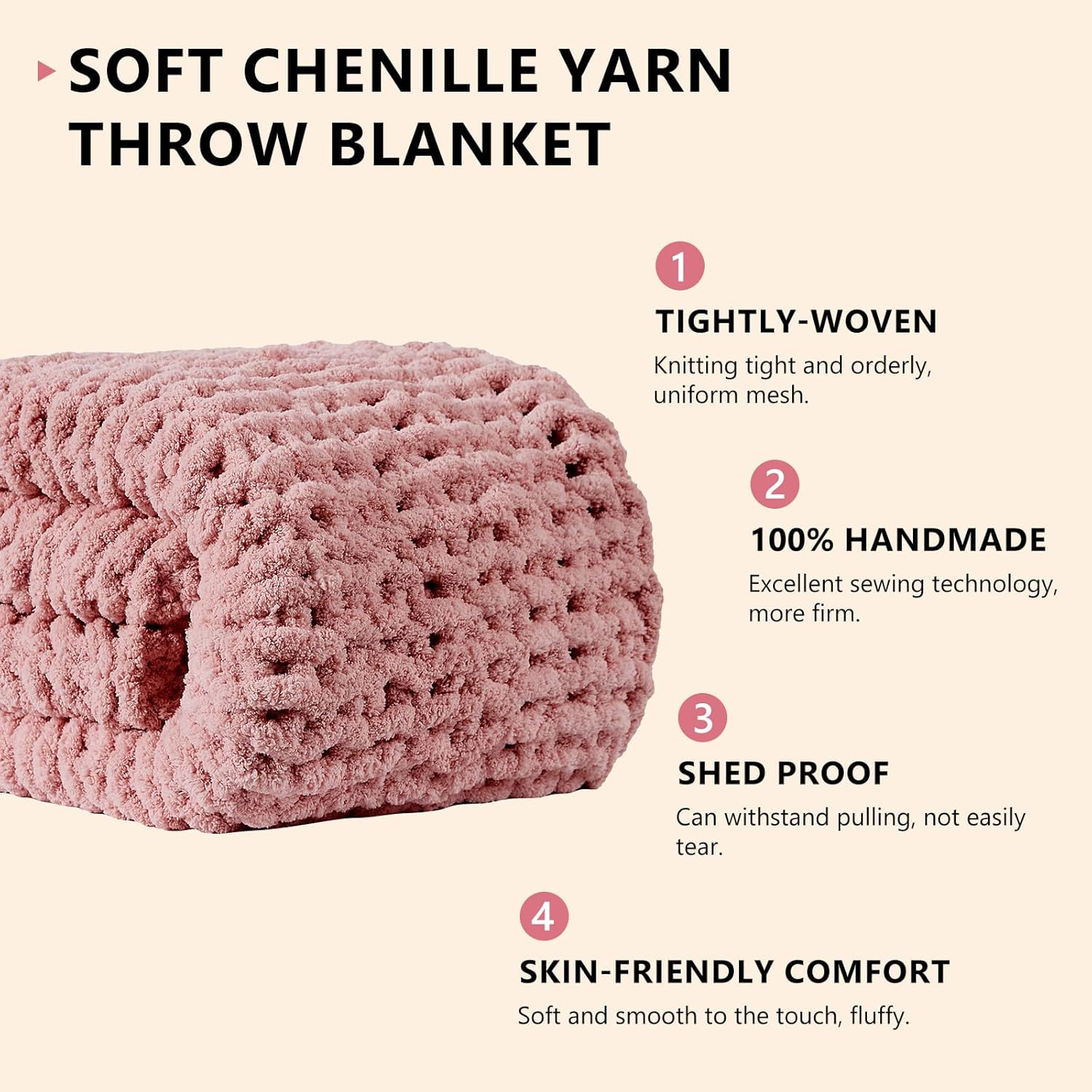 - 100% Handmade Chunky Knit Blanket: Our knit blanket throw is made from 100% hand-woven fabric with premuim Chenille yarn, excellent handcrafted knitting improves yarn density to create a warm and soft touch, full body hug to immerse you in tenderness