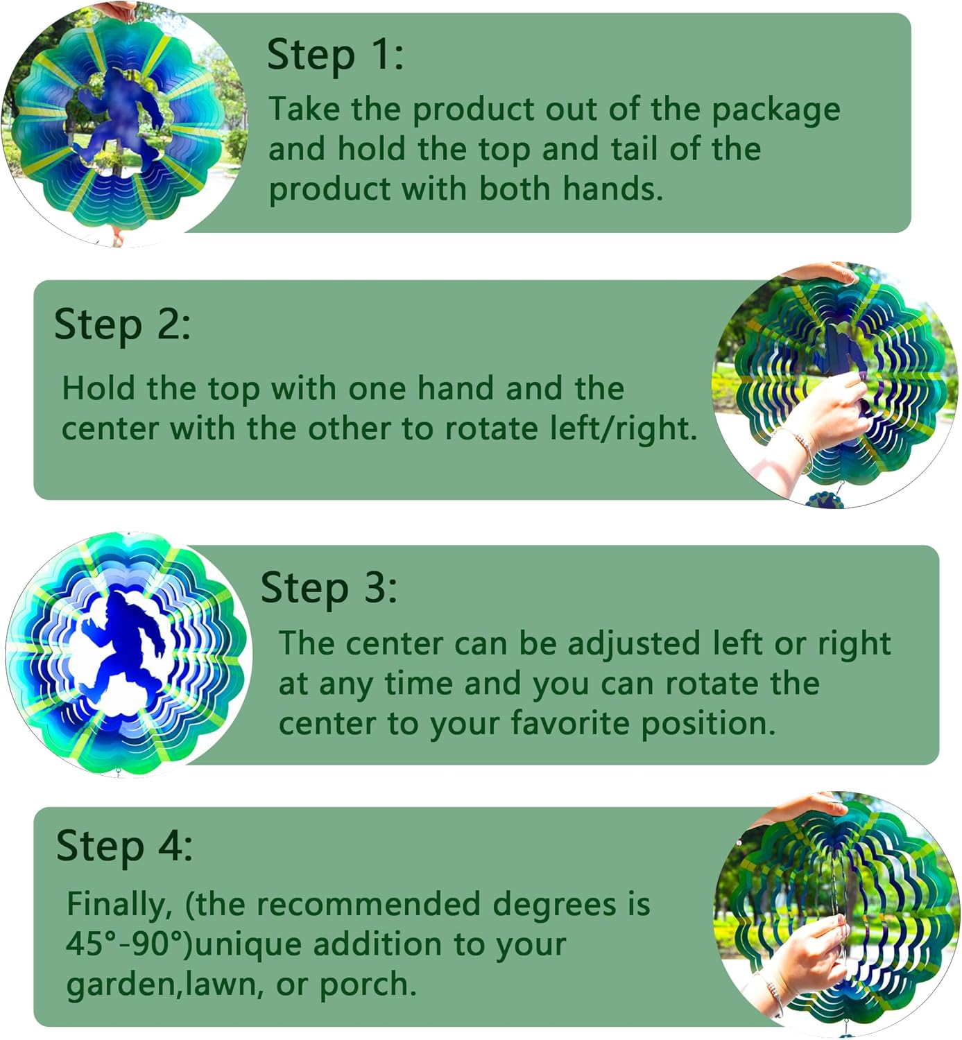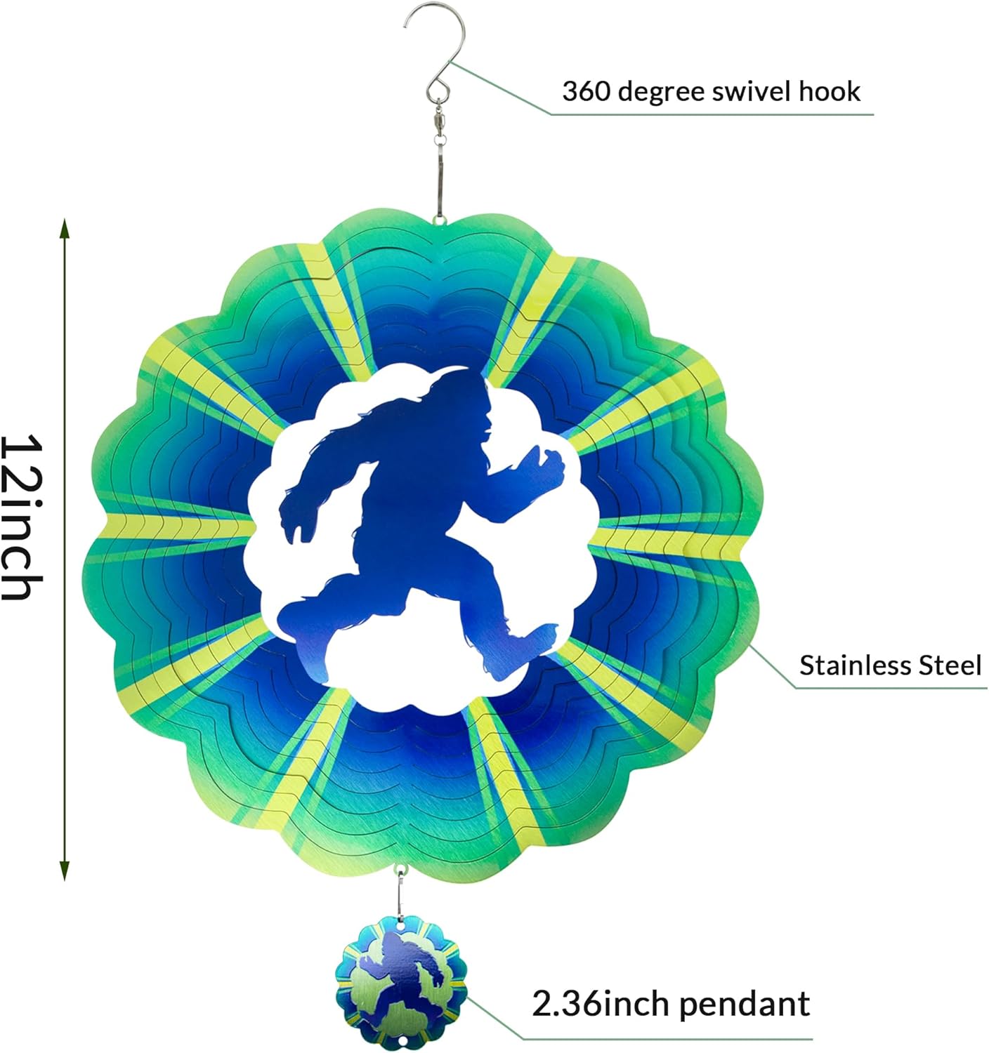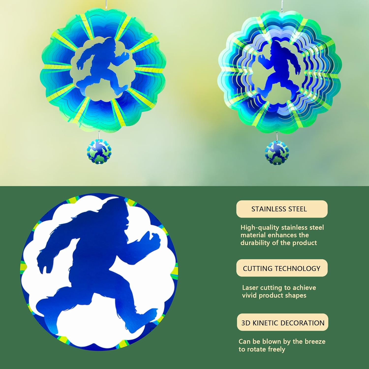 - 【Product introduction】: This 3D wind spinner is made of 12 inches and made of high-quality stainless steel. which adopts cutting technology and PUV printing to achieve a vivid bigfoot shape.
