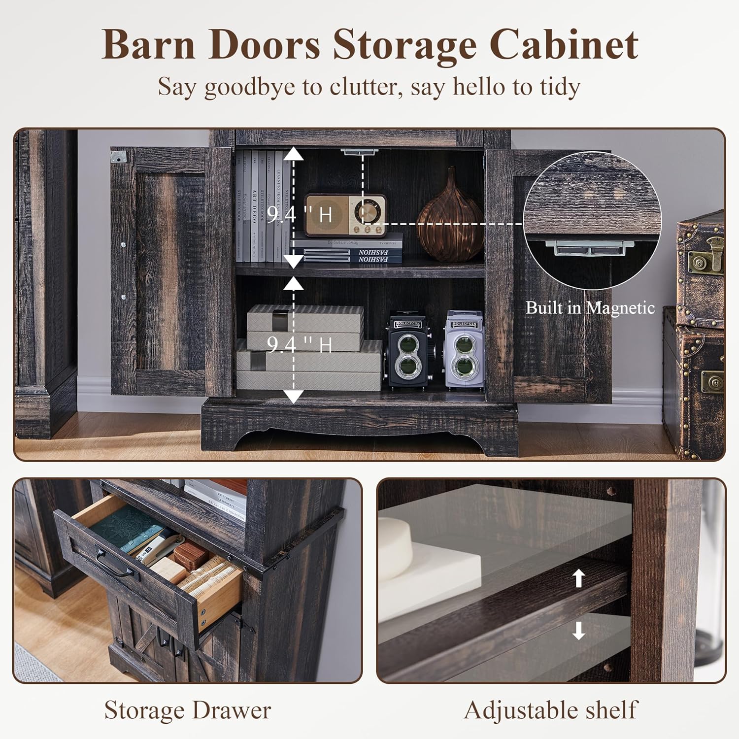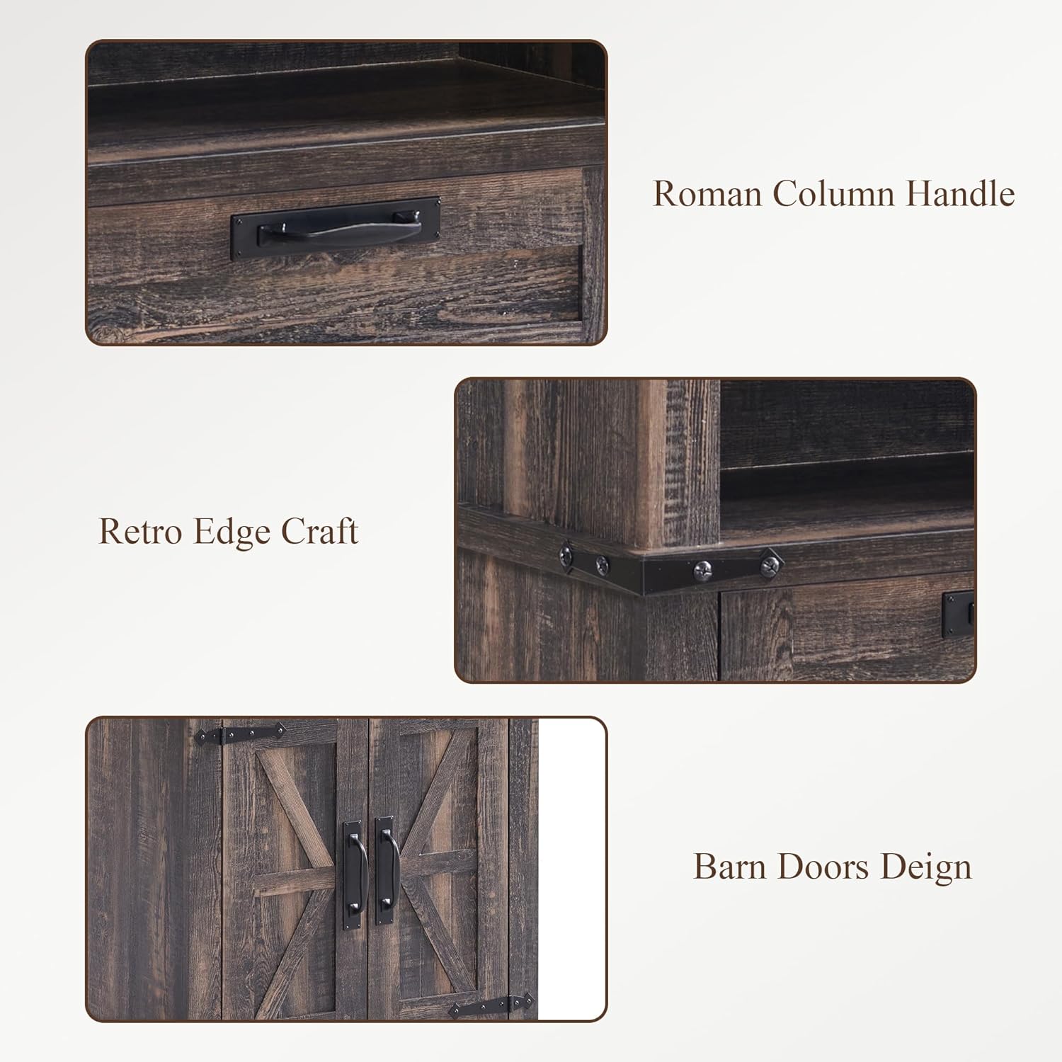 - 4-Tier Open Shelf Design : Each of the 3 shelves is free to move, allowing you to adjust the height to suit different item. adjustable shelf inside the hutch as well which can offer customized storage space.