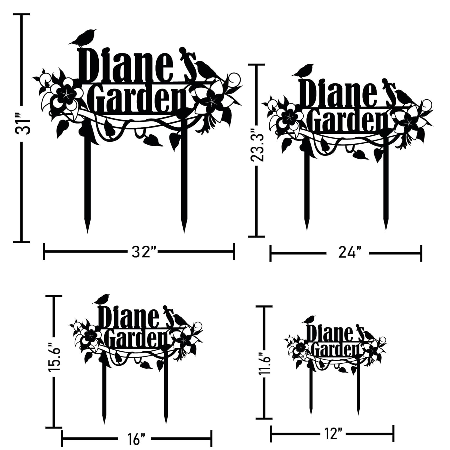 Personalized Flower and Bird Metal Garden Stake, Bird Garden Sign, Custom Flower Yard Decor, Mom's Garden Gift, Gardener Family Name Sign, Patio Home Gift, Yard Art, Housewarming Gift