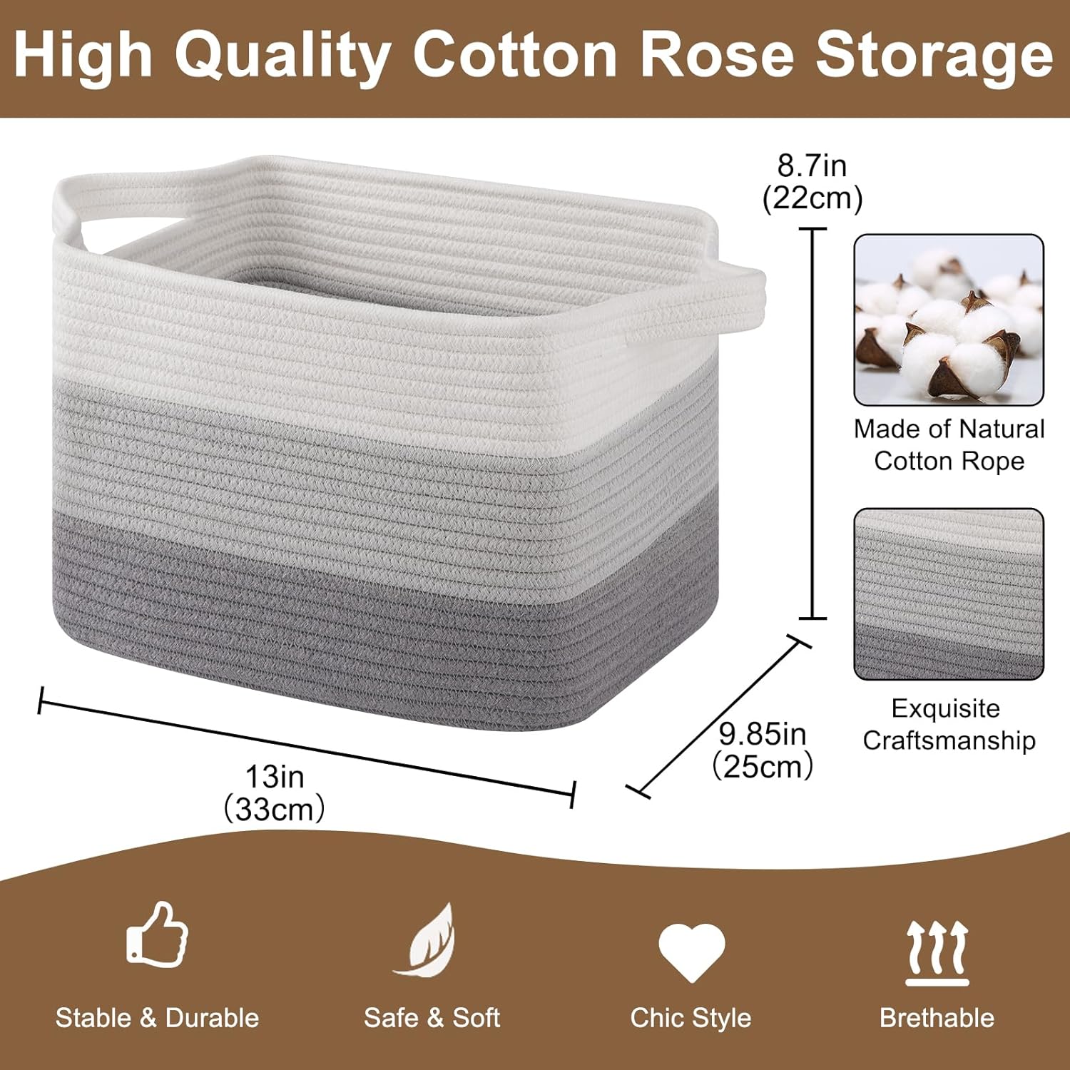 - Sturdy & Long-lasting: Made of high-quality natural cotton rope, these woven baskets are exceptionally durable & sturdy and firm enough in regular use. They can keep their shape even with heavy use. Each nursery basket with handles for easy carry