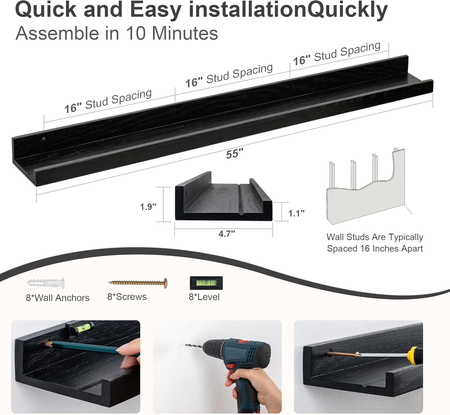 - Multi-Functional: Get creative and find more functions other than the long picture ledge shelf. FLYJOE storage ledge shelves can act as a kids' bookshelf, display shelf for collectibles figures, and more.