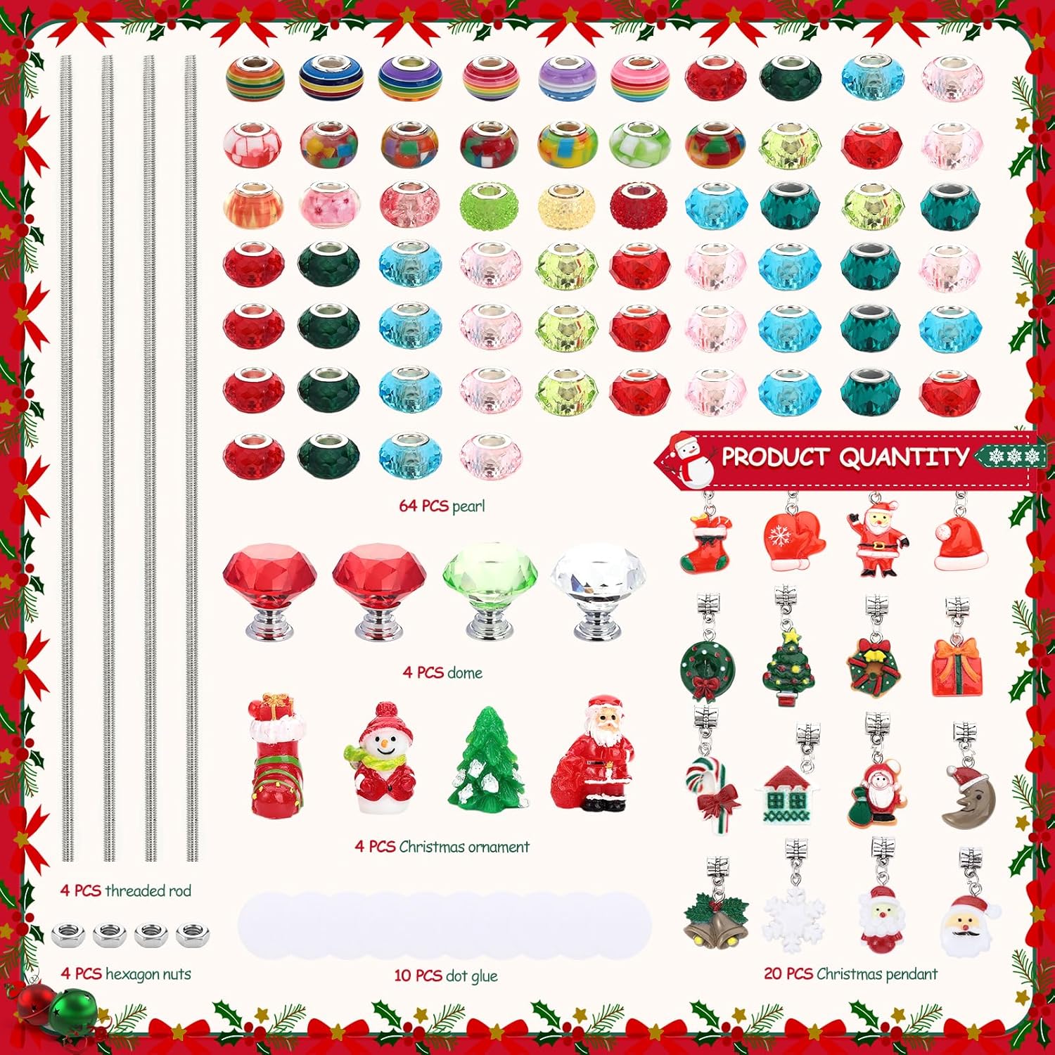 - PACKAGE INCLUDED: Our beaded garden stakes are decorated with exquisite glass bead tops, which are beautiful and uniquely artistic. You will receive a total of 110pcs products, including 4 crystal stoppers, 4 12-inch threaded rods, 20 Christmas-style pendants, 4 Christmas decorations ornaments, 4 screw caps, 10 glue dots, 64 colorful beads
