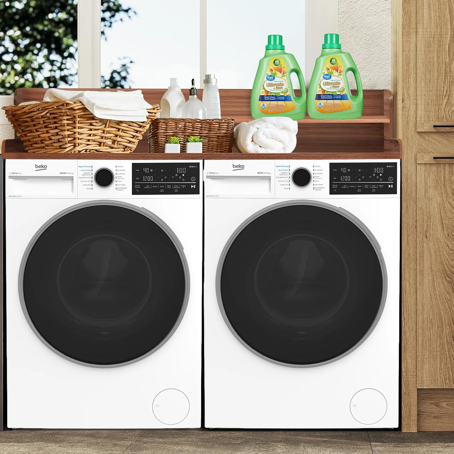 - γEfficient Storage SolutionγWith exceptional storage capacity, it offers ample space for laundry detergents, fabric softeners, and other essentials. More than just a platform for your washing machine and dryer, its versatility allows you to use the space for a variety of purposes. Whether you need a sorting area or a temporary workspace, our countertop easily adapts to meet your needs.