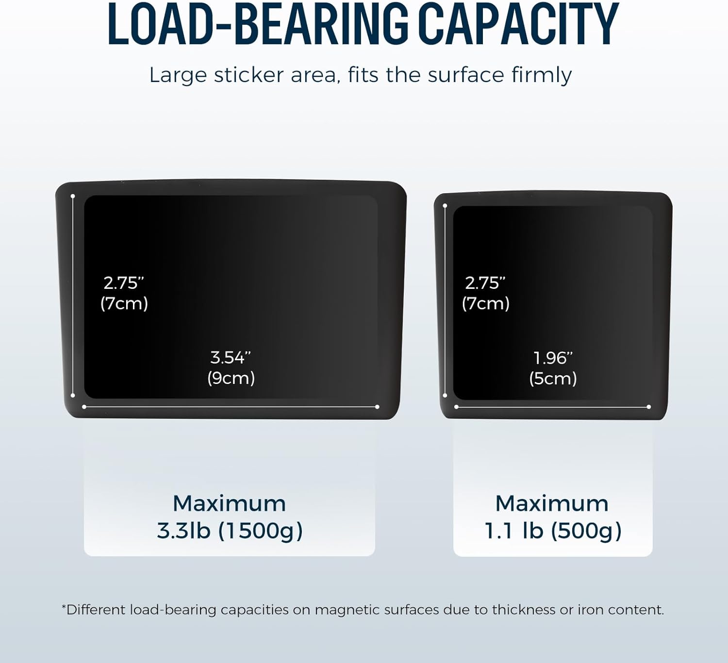 - Super Load-Bearing: Secure magnetic storage organizer for whiteboards. The small size has a maximum load-bearing capacity of 3.3 lbs (1.5 kg), while the mini size has a maximum load-bearing capacity of 1.1 lbs (0.5 kg)