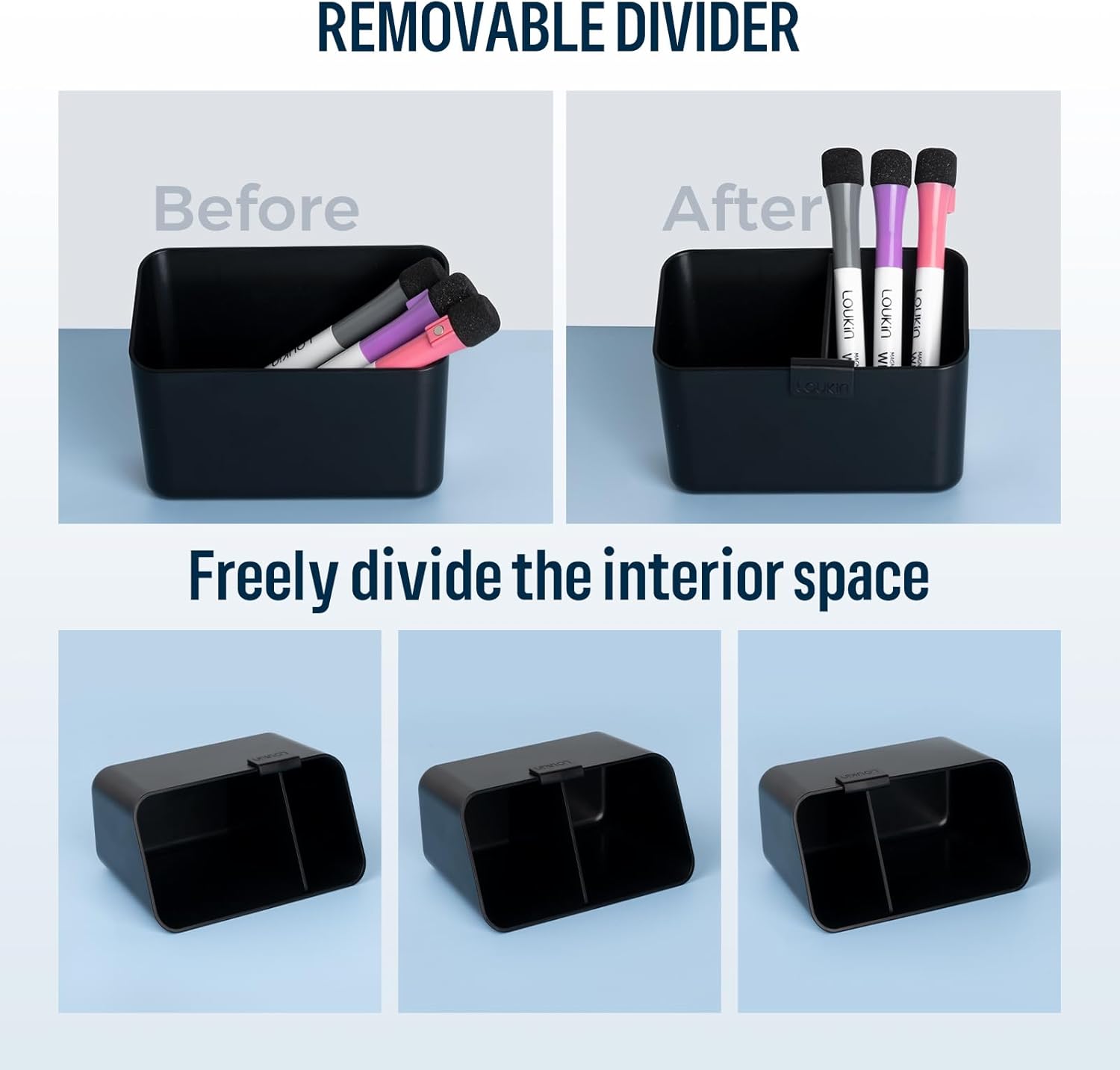 loukin Magnetic & Adhesive Dry Erase Marker Holder with Diver, 1 Small + 1 Mini, Magnetic Storage Organizer for Whiteboard or Refrigerators (Black)