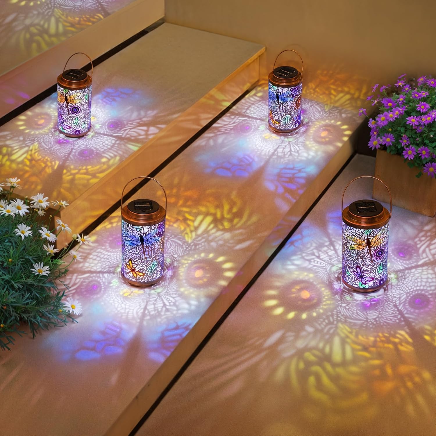 - Solar Powered, Energy Saving: No need for batteries or electricity. The outdoor solar lanterns charged in direct sunlight by day, and automatically light up at night. The beautiful shadows are playful and artistic which help creating a beautiful ambiance in your balcony, yard, garden, patio, terrace, pavilion, window or porch