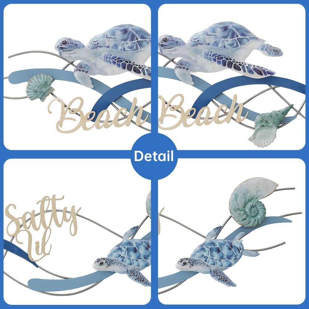 - [Rust-Proof Paint Sprayed Iron Art] Outdoor metal wall art is made of iron forging, hand-painted, rust-proof and gold foil technology, making the blue metal wall decor light and luxurious, scratch-resistant and easy to clean. The surface of the farmhouse metal wall decor is treated with high-temperature baking paint, and large metal art wall decor is resistant to high temperatures. The colored paint surface is exquisite and firm, smooth and will not fall off. Metal wall art for living room is a unique artswork for collection.