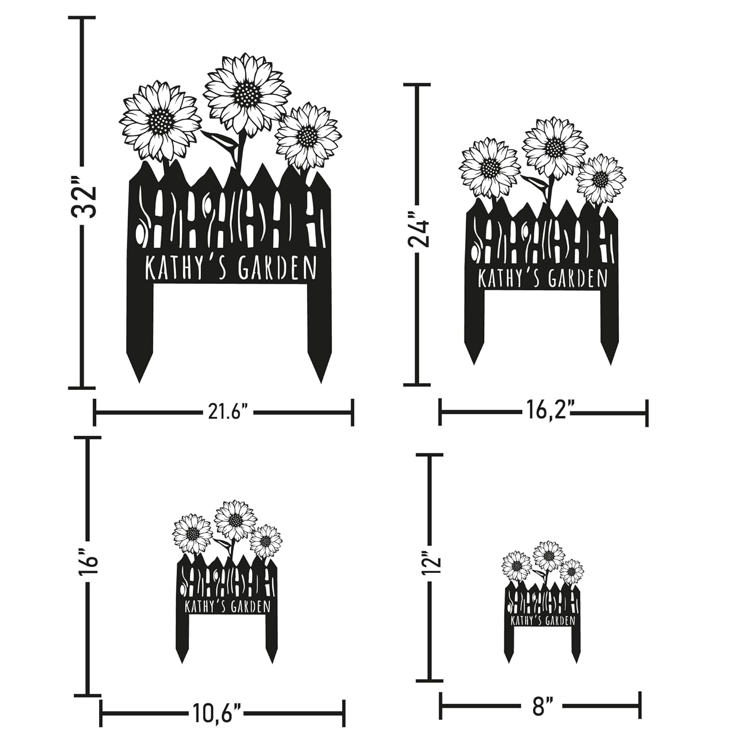 - DIMENSIONS : For garden decors, sizes shows total size including stake height. When you order it 12" size, it'll be 12" total length including stake