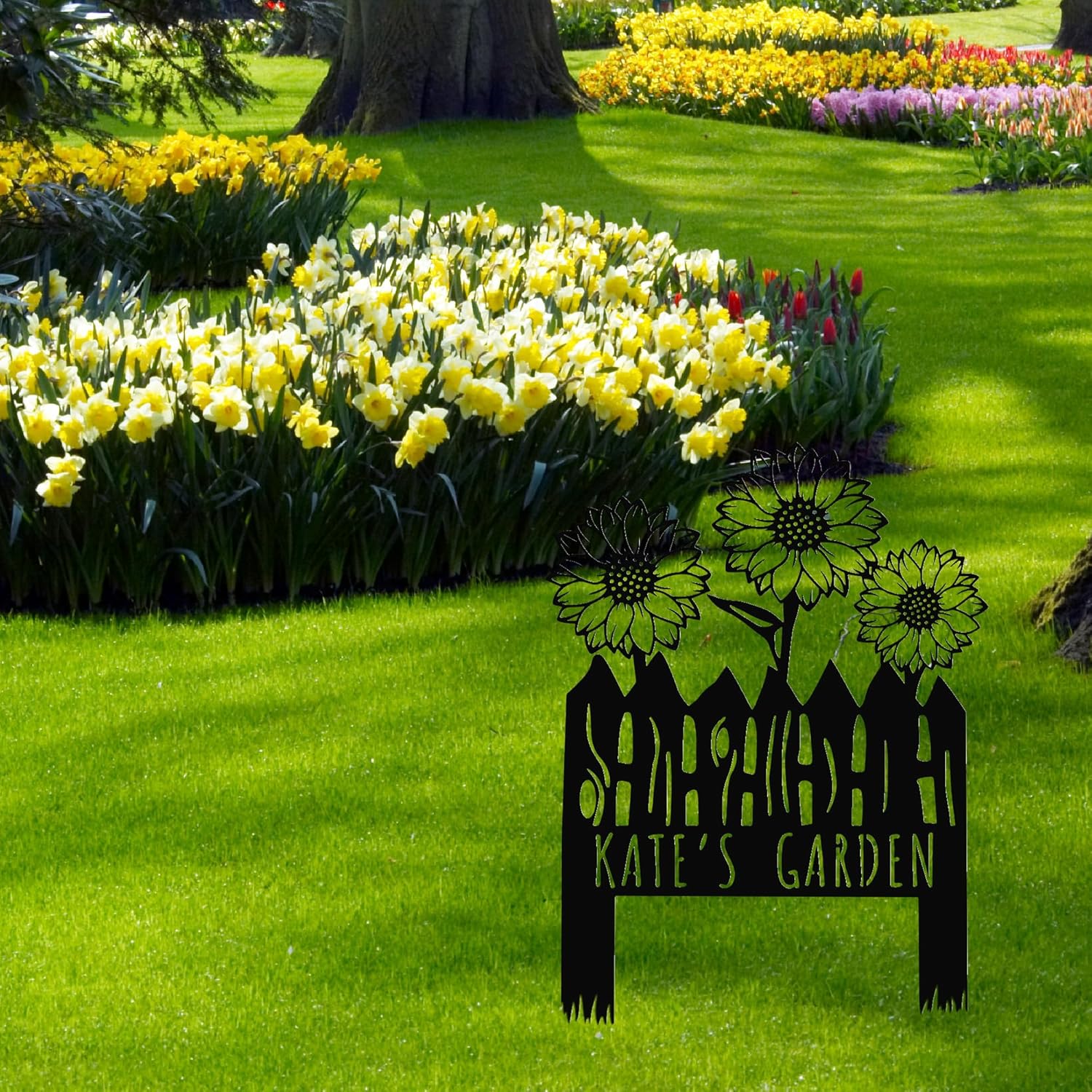 Custom Sunflower Metal Garden Sign with Stakes, Flower Garden Decor, Personalized Family Name Sign, Farmhouse Yard Decorative, Patio Art, Mother's Day Gift, Mom Gift, Housewarming Gift