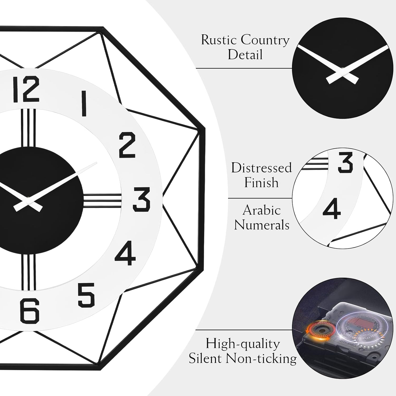 - Accurate and Quiet: Equipped with a quartz silent movement, this decorative wall clock provides accurate timekeeping without any noisy or annoying ticking sounds. It allows you to enjoy a peaceful environment while you sleep, study, or work. Requires 1 AA carbon battery (not included).