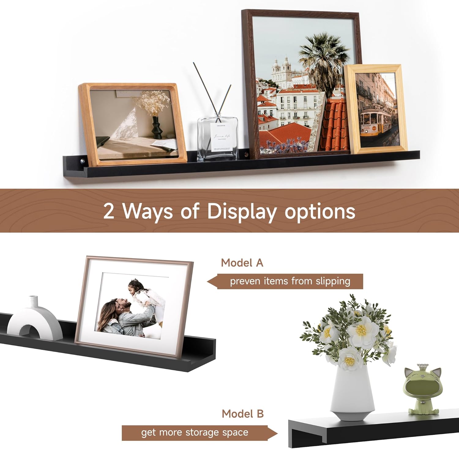 Fun Memories Picture Ledge Shelf, 36 Inch Floating Shelves Set of 2, Nursery Book Shelves for Toys Storage, Kids Bookshelf Wall Mounted for Wall Decor Books Photo Frames, Black
