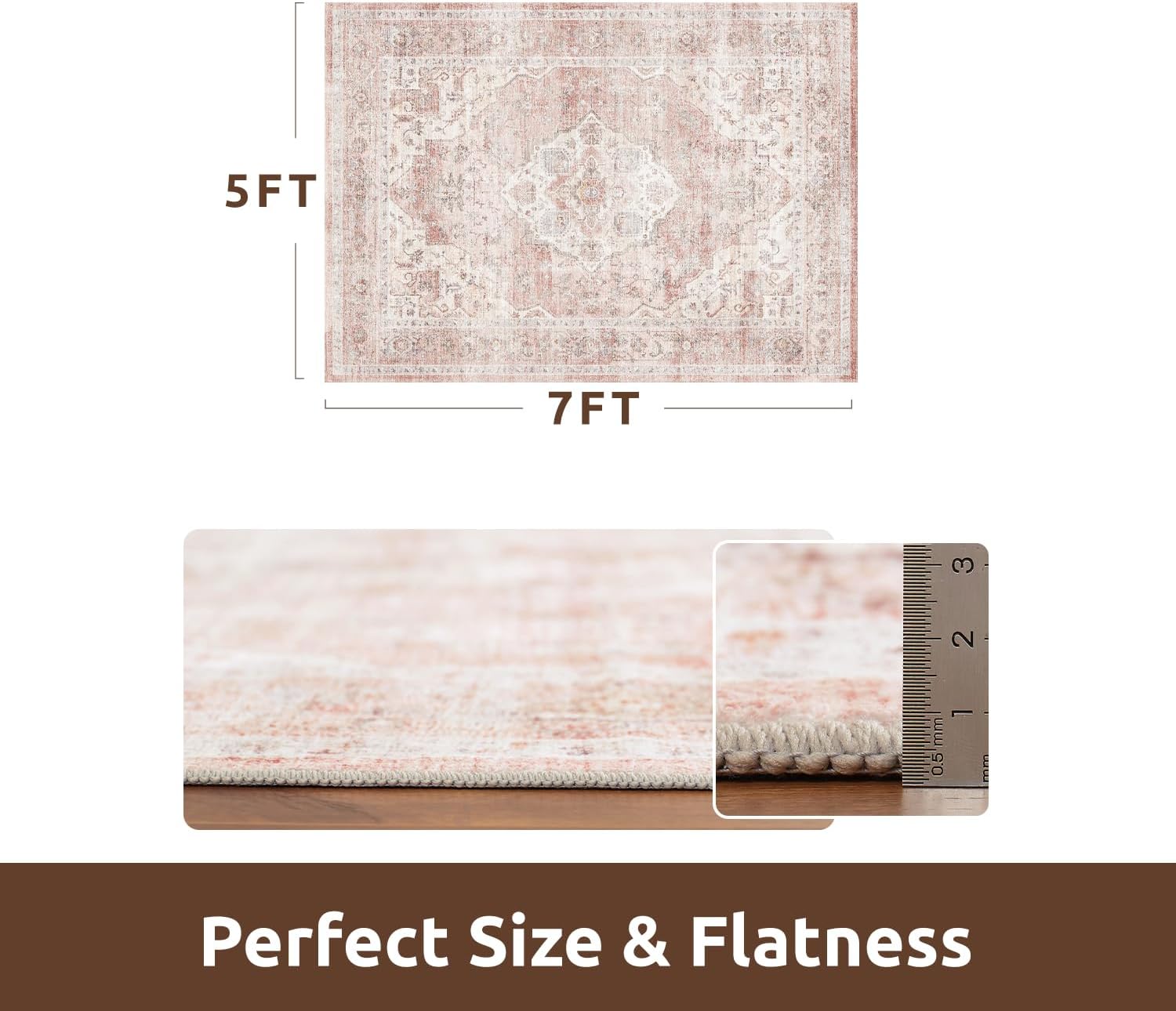 AMOAMI-Area Rug 5X7 Rugs for Living Room-Vintage Soft Pink Rugs for Bedroom-Non Slip Carpet-Machine Washable Rug for Dining Room Living Room Bedroom Office Under Table