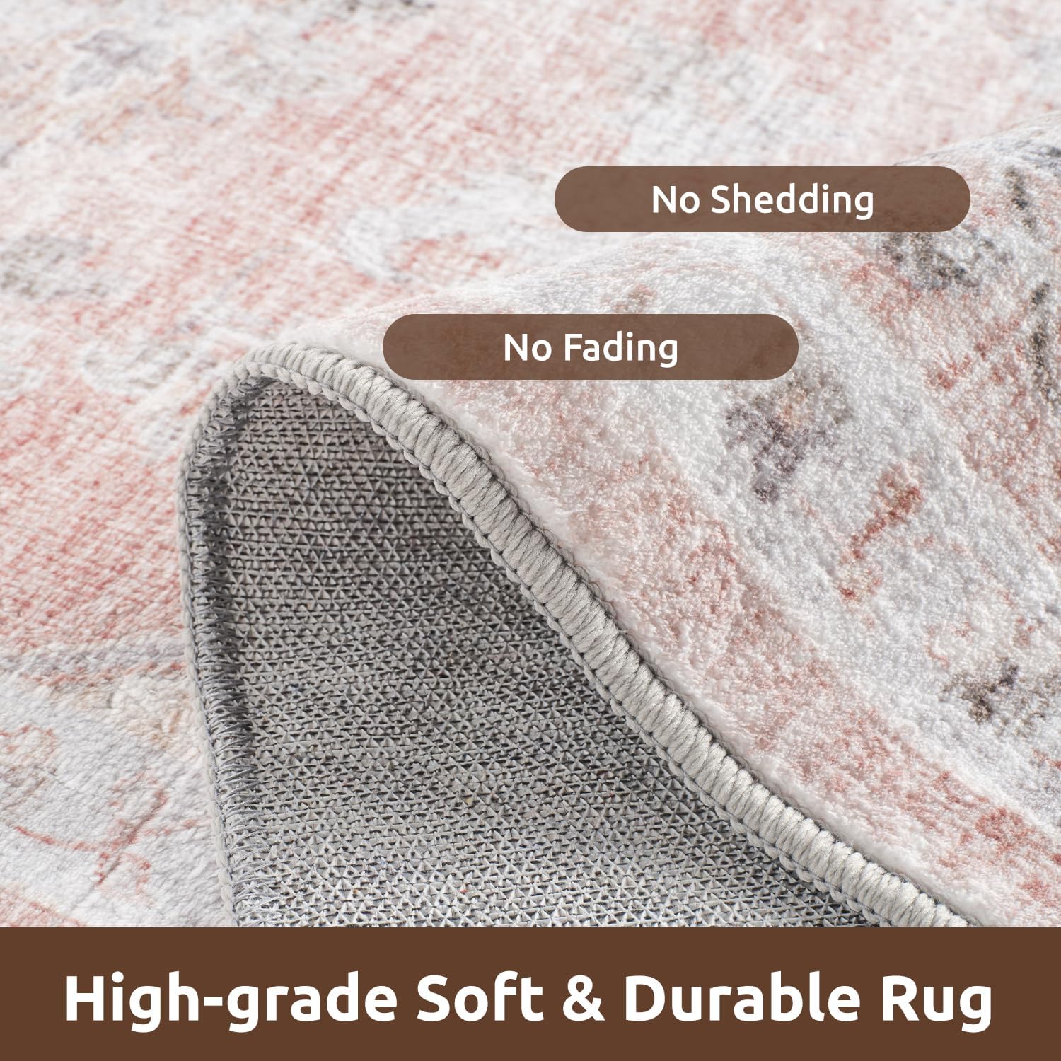 AMOAMI-Area Rug 8X10 Rugs for Living Room-Vintage Soft Pink Rugs for Bedroom-Non Slip Carpet-Washable Rug for Dining Room Living Room Bedroom Office Under Table