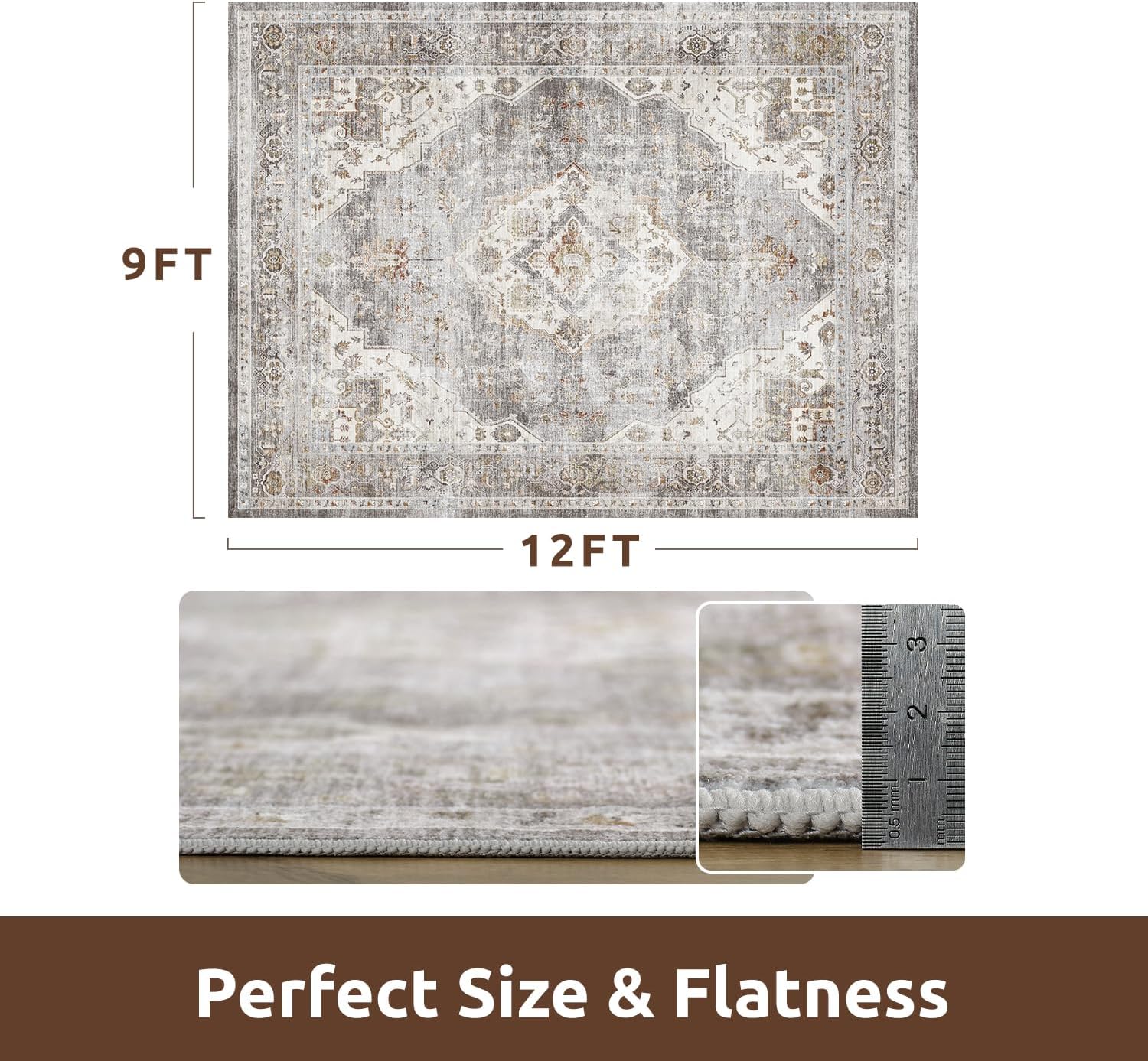 AMOAMI Area Rug - 9x12 Vintage Soft Grey Rug - Non Slip, Washable for Living Room, Bedroom, Dining Room, Office
